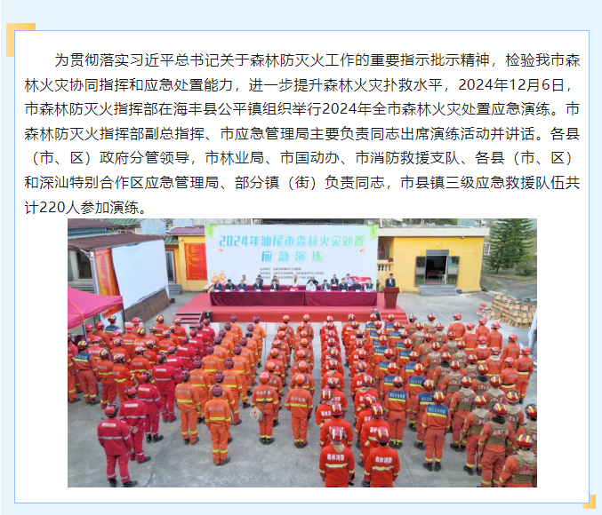 汕尾市森林防滅火指揮部組織開展2024年全市森林火災(zāi)處置應(yīng)急演練