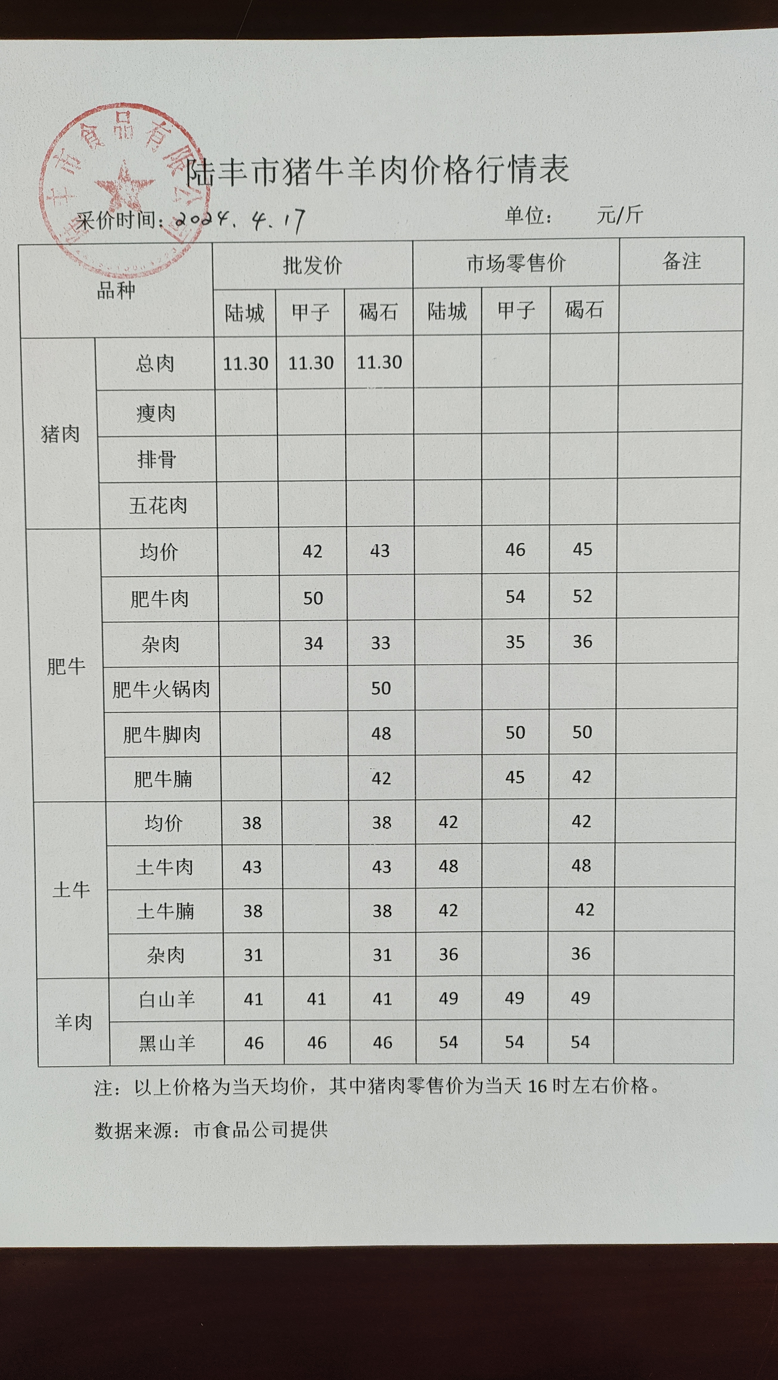 陸豐市豬牛羊肉價格行情表
