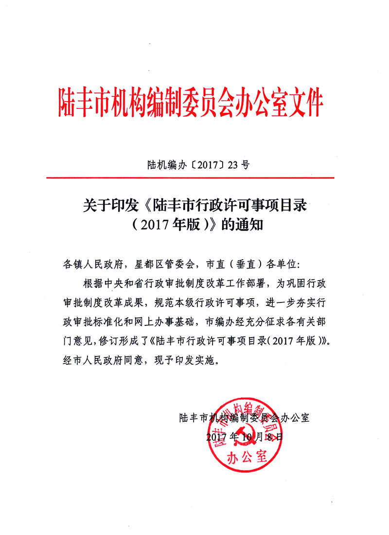 陸豐市行政許可事項(xiàng)目錄(2017年版)