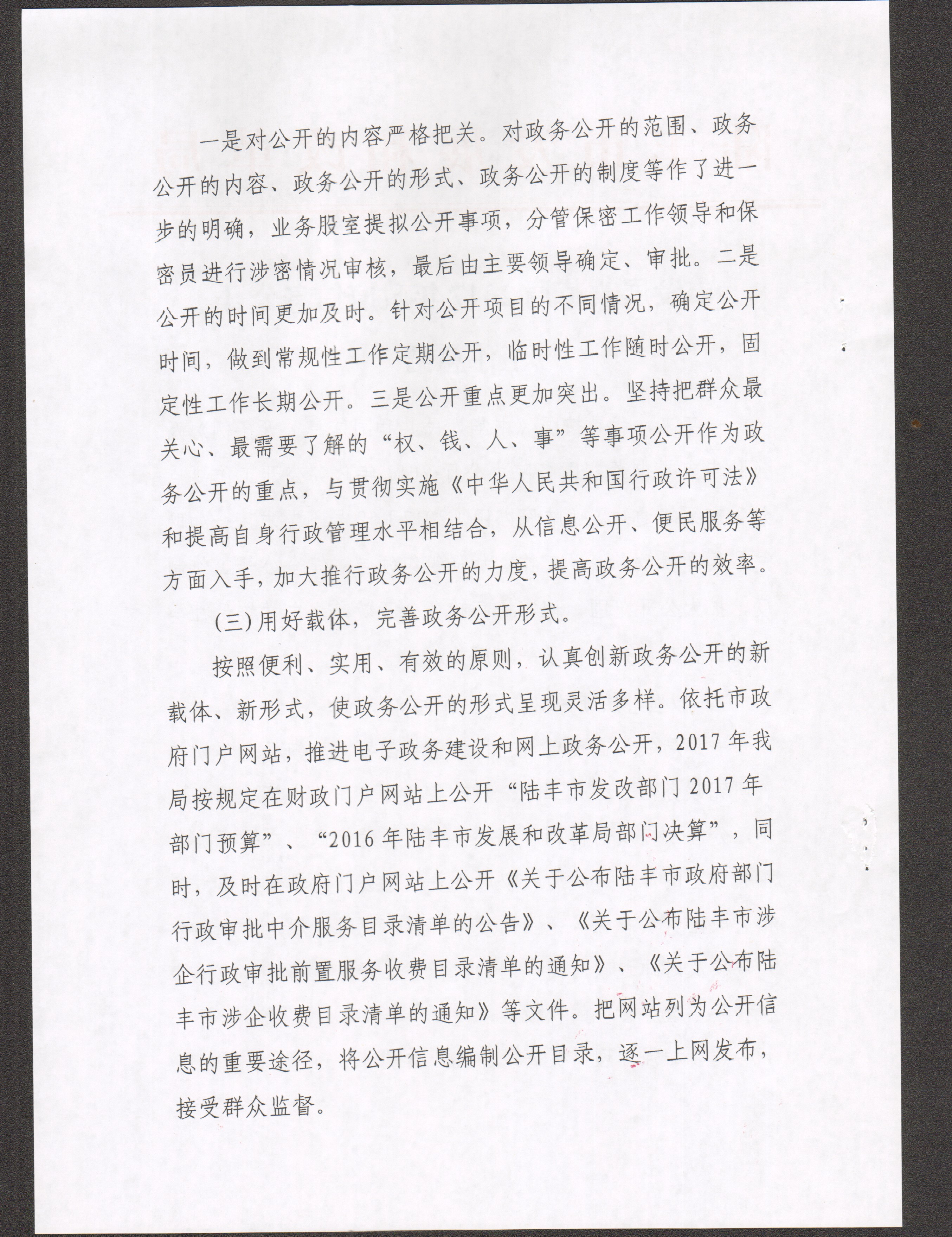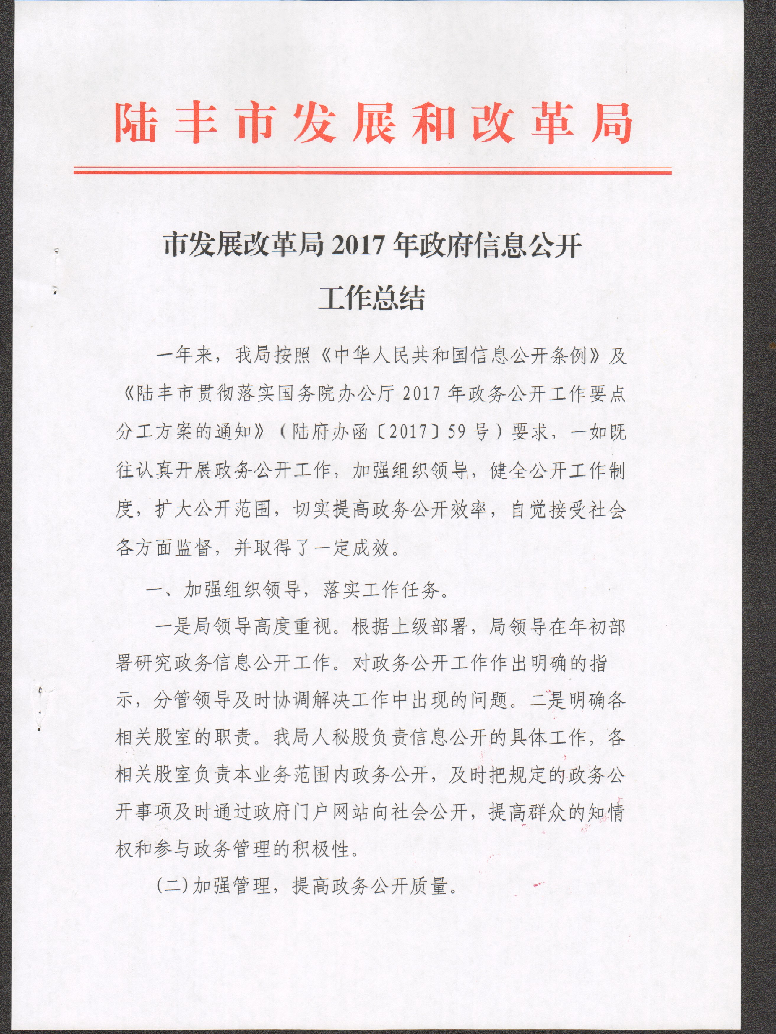 陸豐市發(fā)展和改革局2017年政府信息公開工作總結