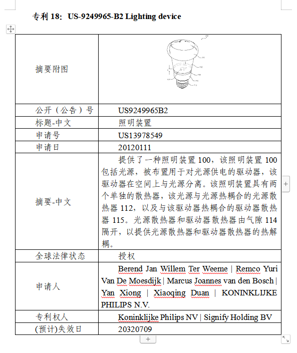 Signify總部位于荷蘭,主要營業(yè)地址位于High Tech Campus 28, 5656 AE Eindhoven, The Netherlands,其美國分公司Signify North America主要營業(yè)地址位于200 Franklin Square Drive, Somerset, New Jersey 08873。Signify的前身是飛利浦公司照明事業(yè)部,2016年,飛利浦照明事業(yè)部獨(dú)立上市,并于2018年由飛利浦照明改名為Signify,但繼續(xù)使用飛利浦作為產(chǎn)品品牌,是全球領(lǐng)先的智能互聯(lián)LED產(chǎn)品、LED照明控制系統(tǒng)和服務(wù)廠商。Signify擁有近2萬項(xiàng)專利,覆蓋了LED照明產(chǎn)業(yè)鏈絕大部分技術(shù)分支,涵蓋燈具結(jié)構(gòu)、調(diào)光調(diào)色、驅(qū)動(dòng)器、控制器、照明系統(tǒng)和通信協(xié)議等。此外,Signify基于其專利布局,于2008年推出了專利許可計(jì)劃EnabLED,提供5000余項(xiàng)授權(quán)專利,目前被許可人達(dá)到1500余名,包含百余家中國企業(yè)。