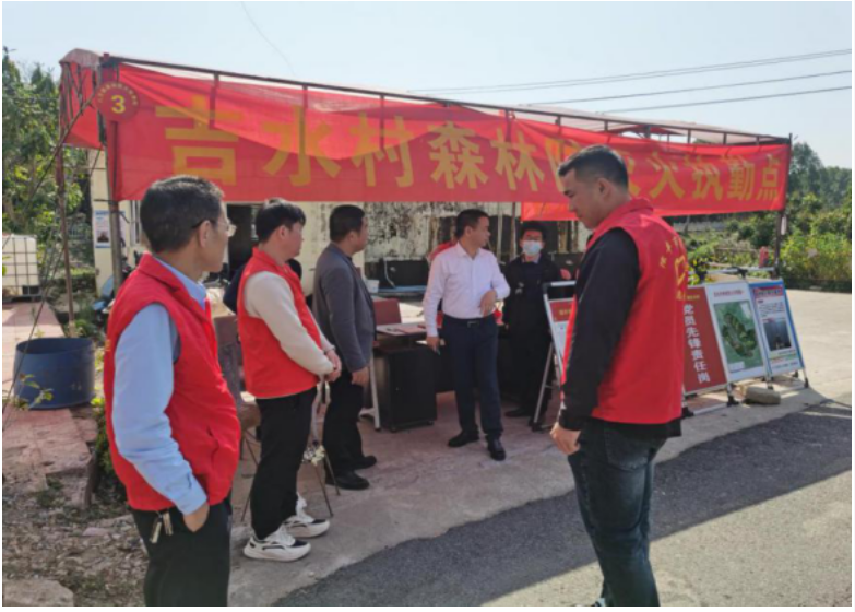 清明節(jié)期間為切實(shí)抓好協(xié)助持駐鎮(zhèn)森林防火工作,保障人民群眾生命財(cái)產(chǎn)安全。3月23日,市市場(chǎng)監(jiān)管局黨組書(shū)記、局長(zhǎng)黃海波帶隊(duì)前往協(xié)助掛駐的八萬(wàn)鎮(zhèn)石溪點(diǎn)、秋冬尾與石溪交界點(diǎn)、吉水點(diǎn)三個(gè)森林防火執(zhí)勤點(diǎn)進(jìn)行實(shí)地督導(dǎo),與鎮(zhèn)、村干部一道打響森林防火“清明節(jié)戰(zhàn)役”。