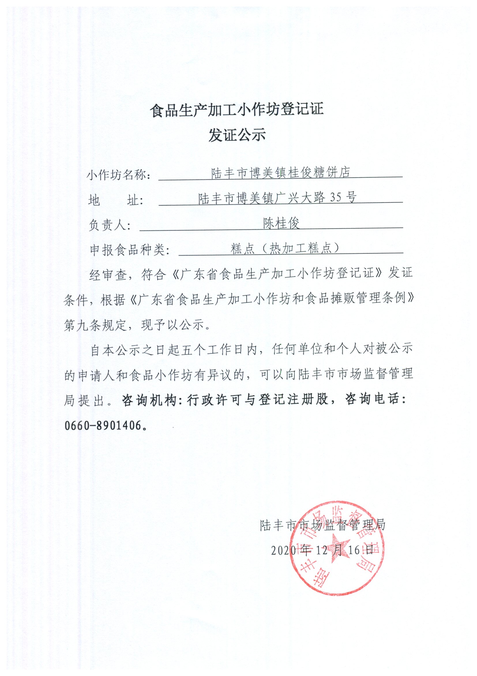 地址:陸豐市城東鎮(zhèn)上陳路口市場監(jiān)管局
