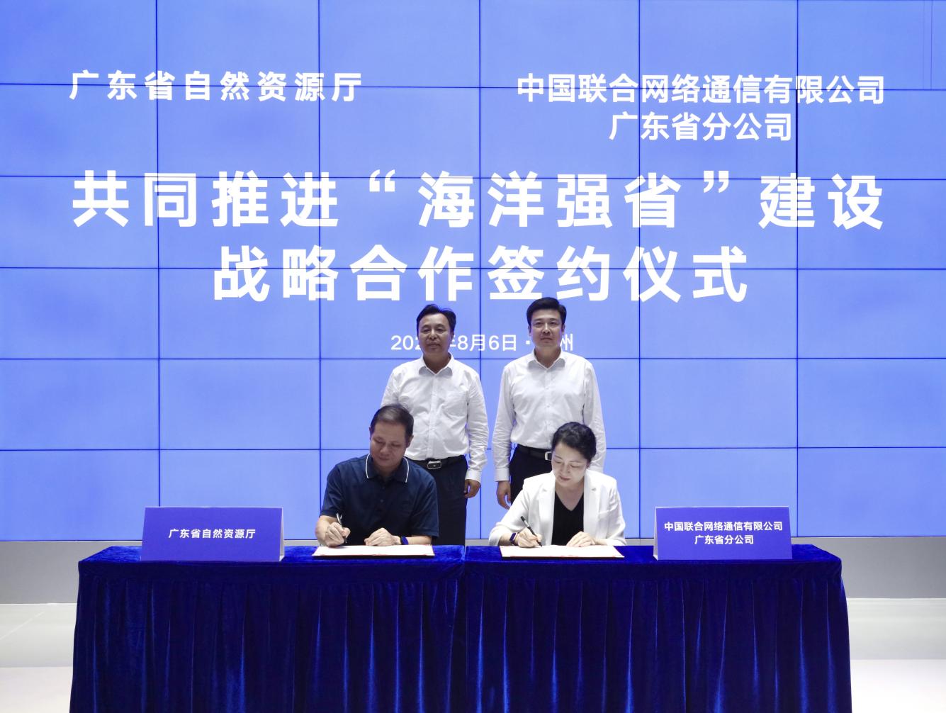 8月6日,廣東省自然資源廳與中國聯(lián)通廣東省分公司簽署《共同推進“海洋強省”建設(shè)戰(zhàn)略合作框架協(xié)議》。省自然資源廳黨組書記、廳長胡建斌,廣東聯(lián)通黨委書記、總經(jīng)理郝立謙共同見證簽約并座談交流。省自然資源廳黨組成員、副廳長,省海洋局局長屈家樹,廣東聯(lián)通黨委委員、副總經(jīng)理聞屏作為雙方代表簽署協(xié)議。