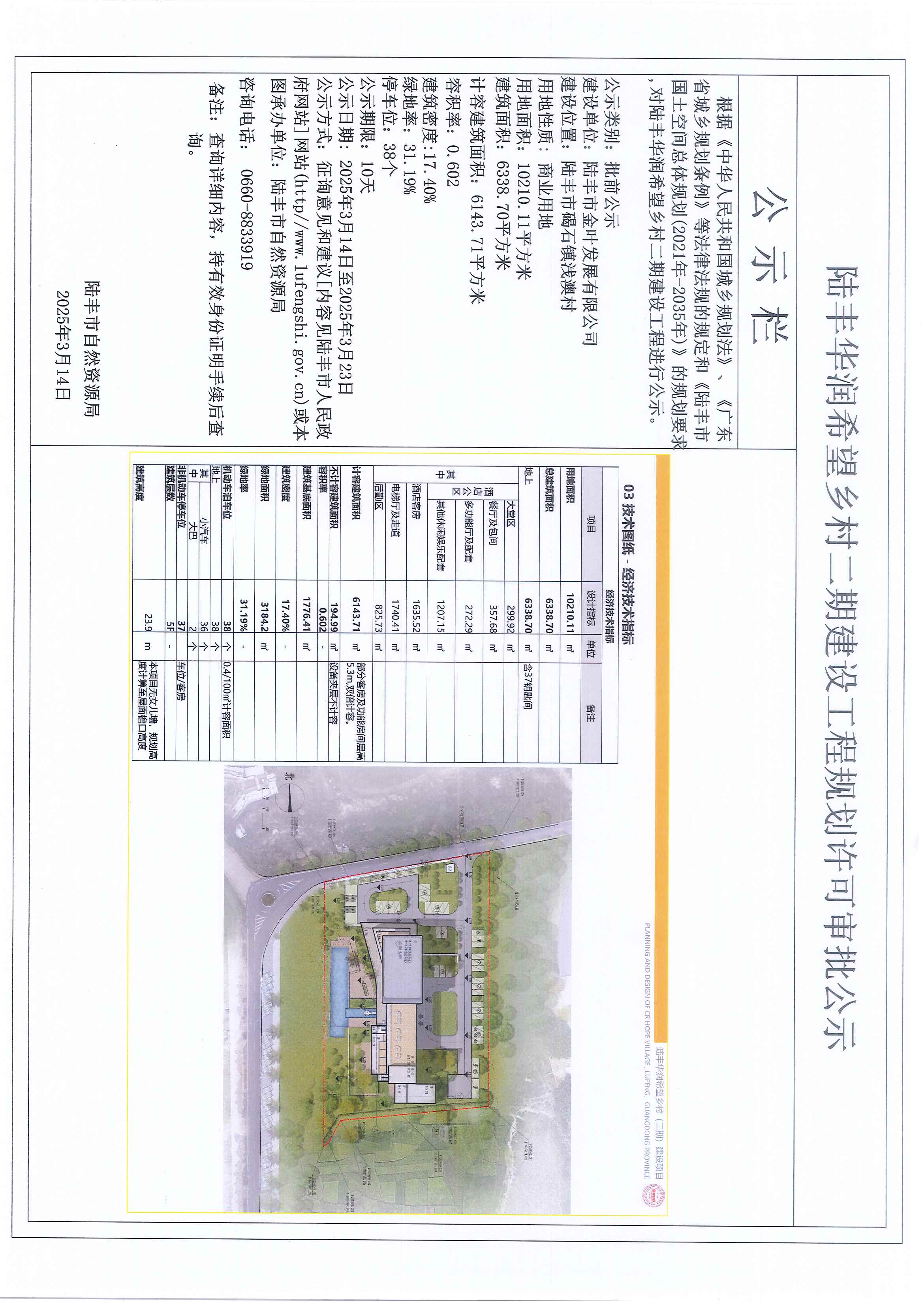 陸豐華潤希望鄉(xiāng)村二期建設(shè)工程規(guī)劃許可審批公示