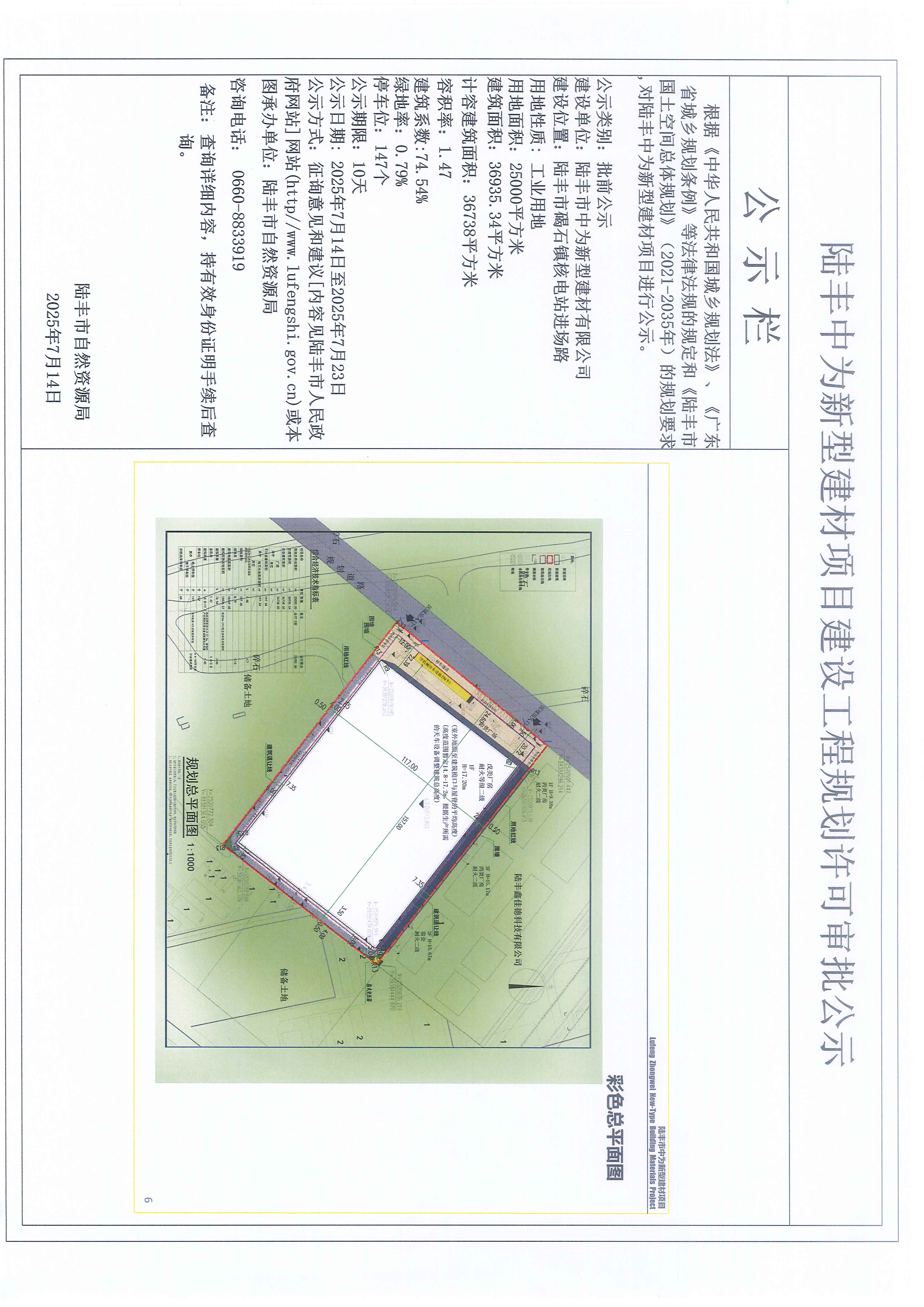 陸豐中為新型建材項(xiàng)目建設(shè)工程規(guī)劃許可審批公示