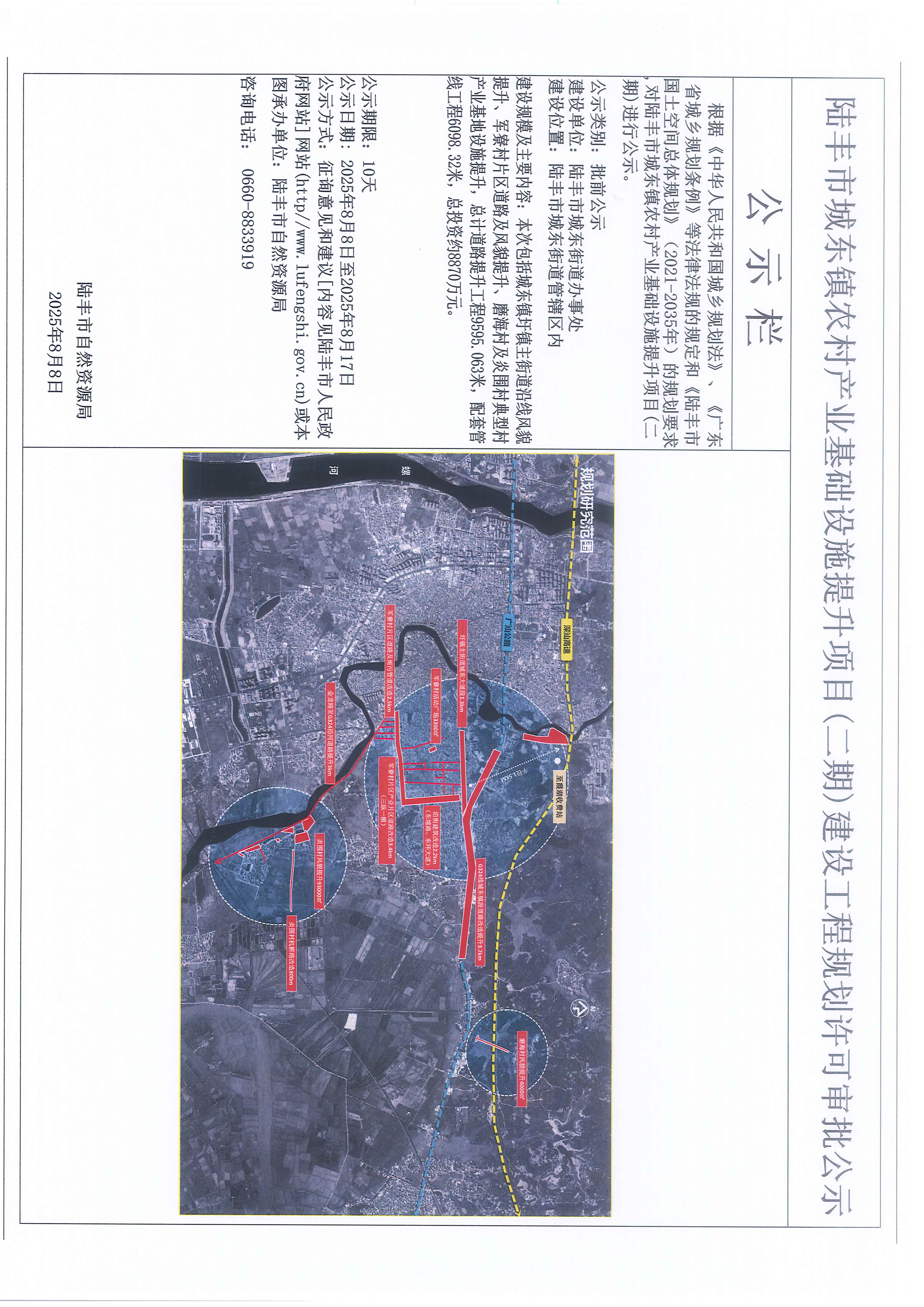陸豐市城東鎮(zhèn)農(nóng)村產(chǎn)業(yè)基礎(chǔ)設(shè)施提升項目(二期)建設(shè)工程規(guī)劃許可審批公示