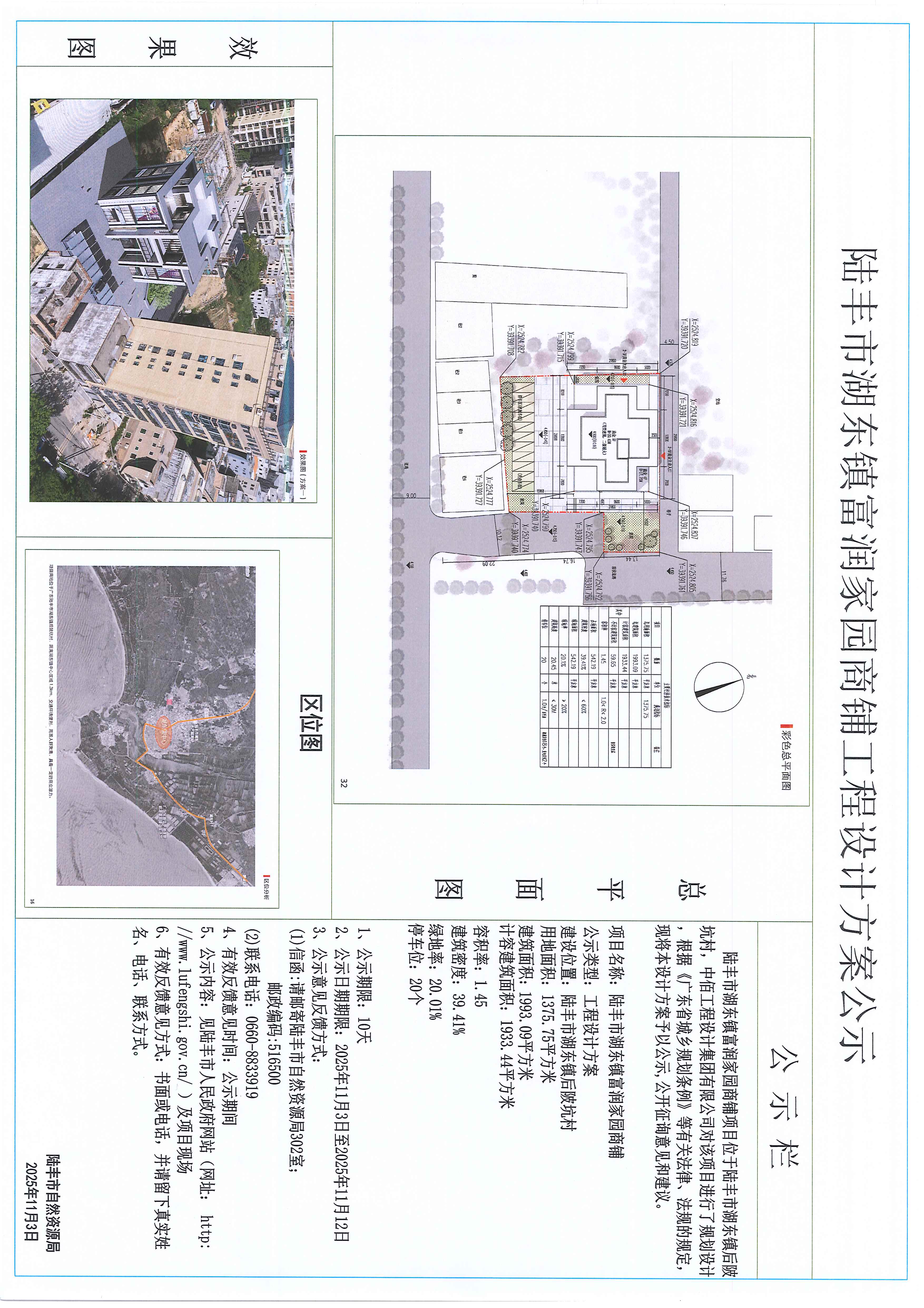 陸豐市湖東鎮(zhèn)富潤家園商鋪工程設(shè)計方案公示