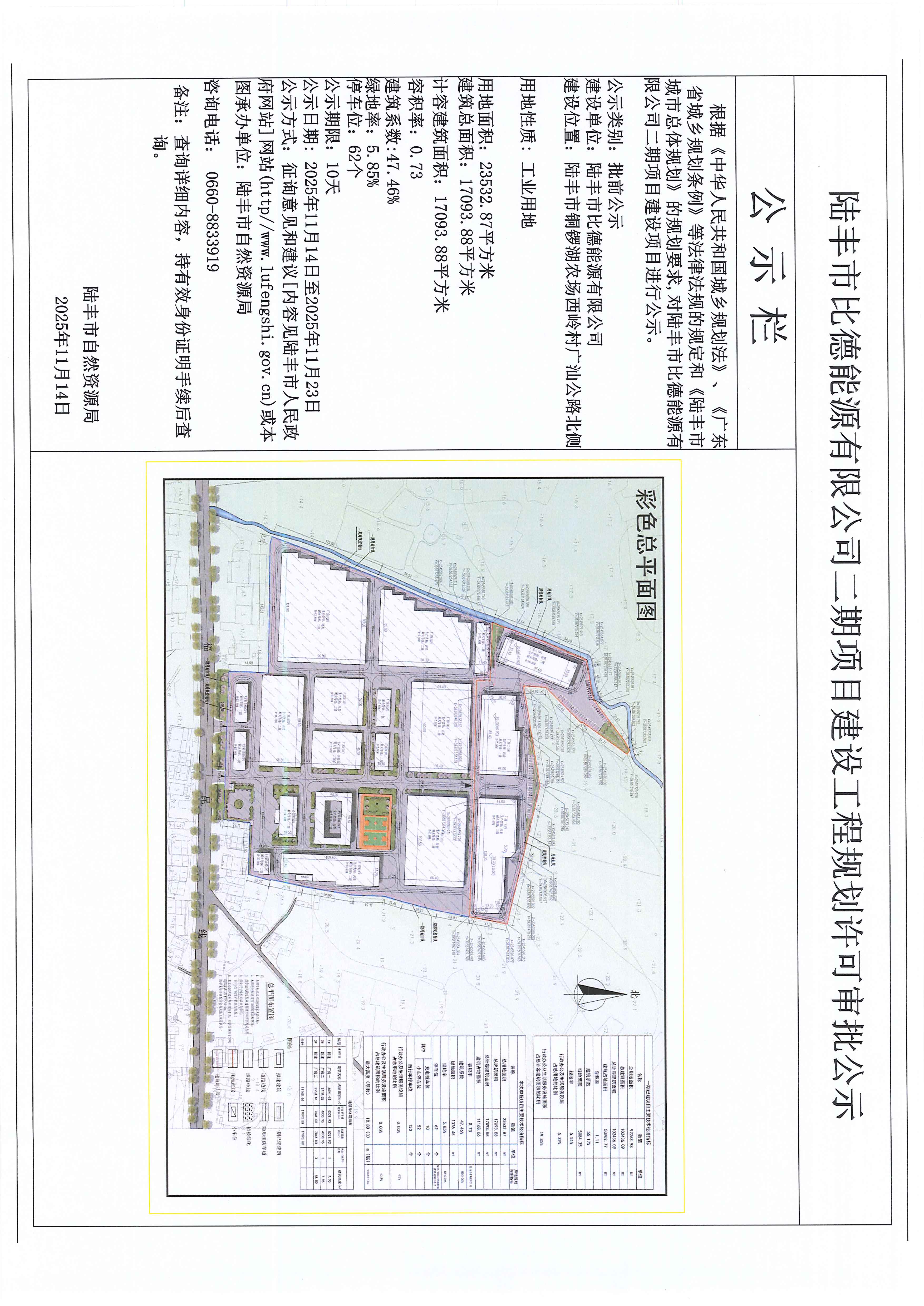 陸豐市比德能源有限公司二期項目建設工程規(guī)劃許可審批公示