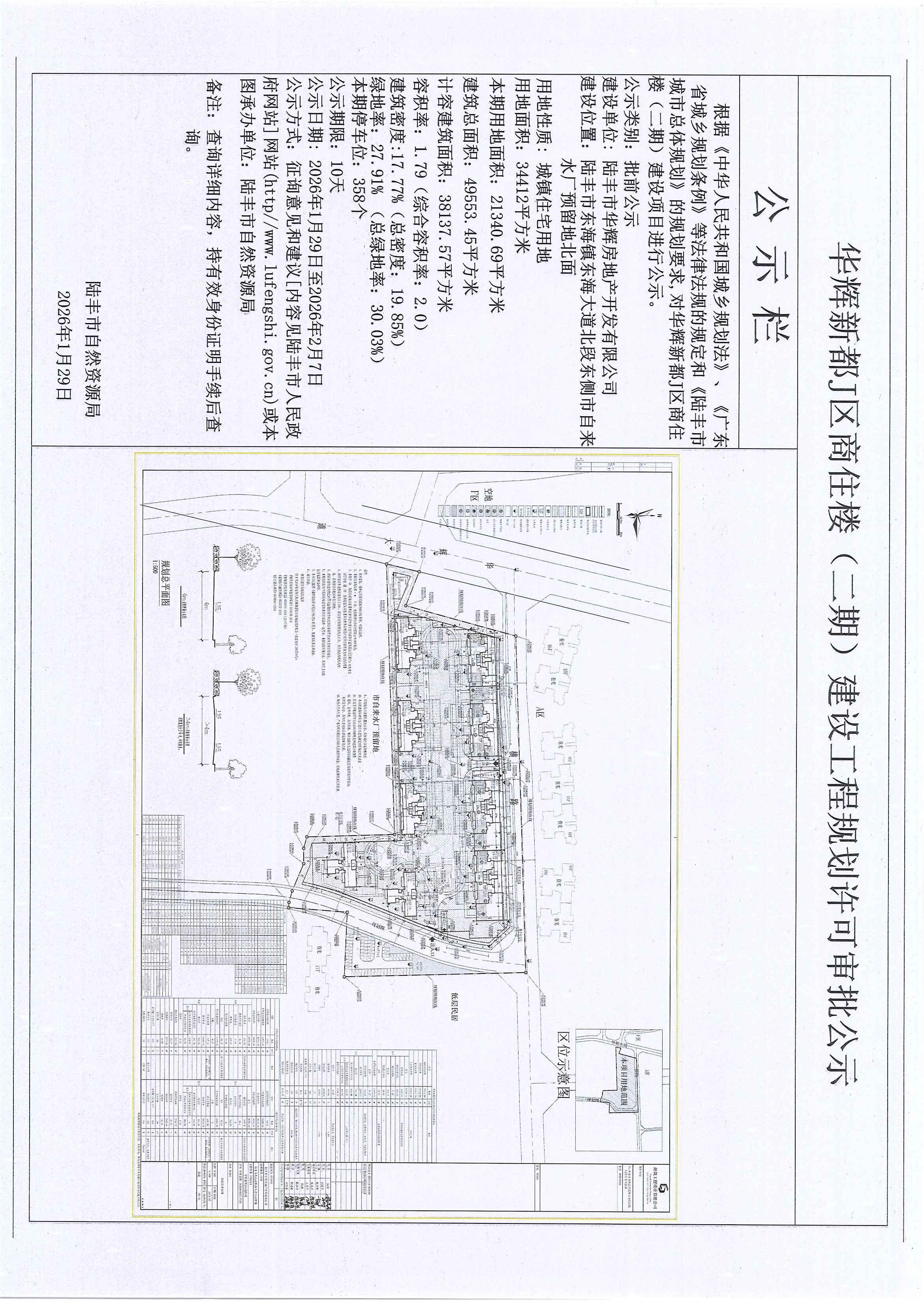 華輝新都J區(qū)商住樓(二期)建設(shè)工程規(guī)劃許可審批公示