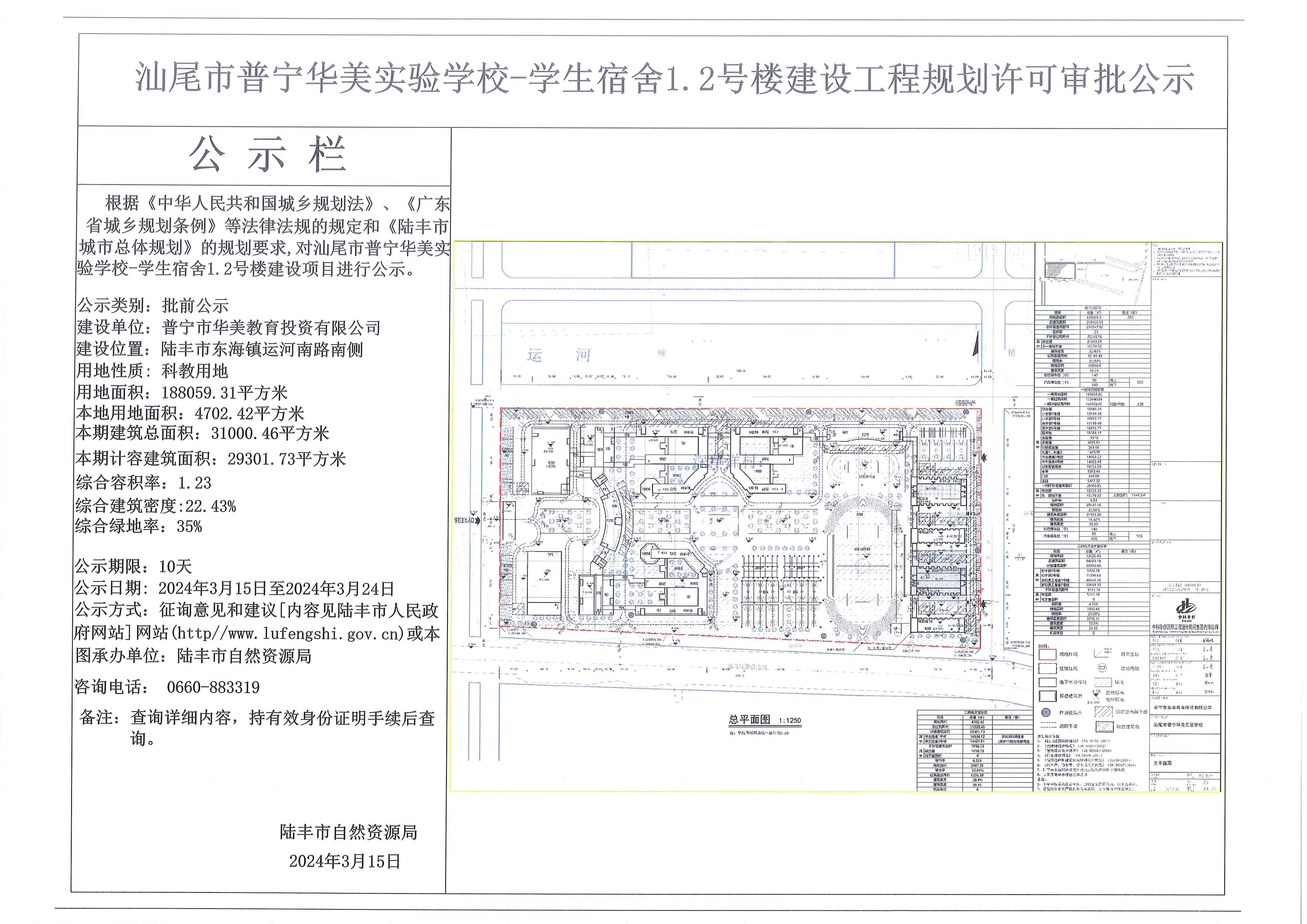 汕尾市普寧華美實(shí)驗(yàn)學(xué)校-學(xué)生宿舍1.2號樓建設(shè)工程規(guī)劃許可審批公示