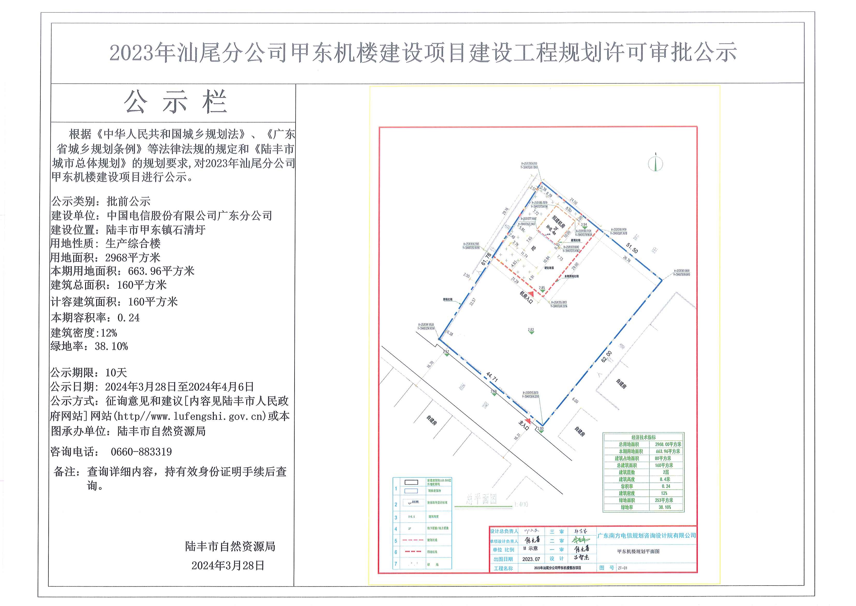 2023年汕尾分公司甲東機(jī)樓建設(shè)項目建設(shè)工程規(guī)劃許可審批公示