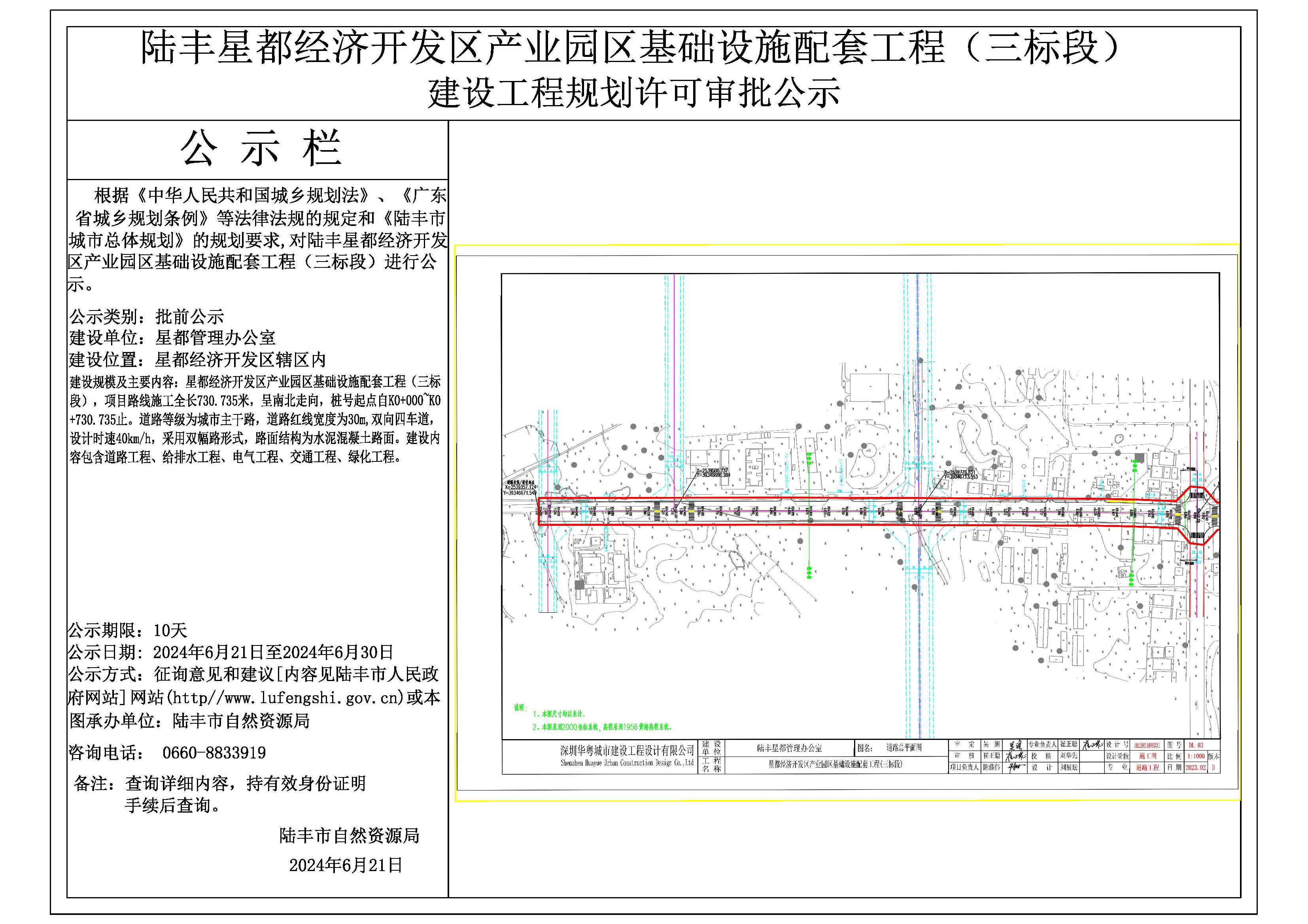 陸豐星都經濟開發(fā)區(qū)產業(yè)園區(qū)基礎設施配套工程(三標段)建設工程規(guī)劃許可審批公示