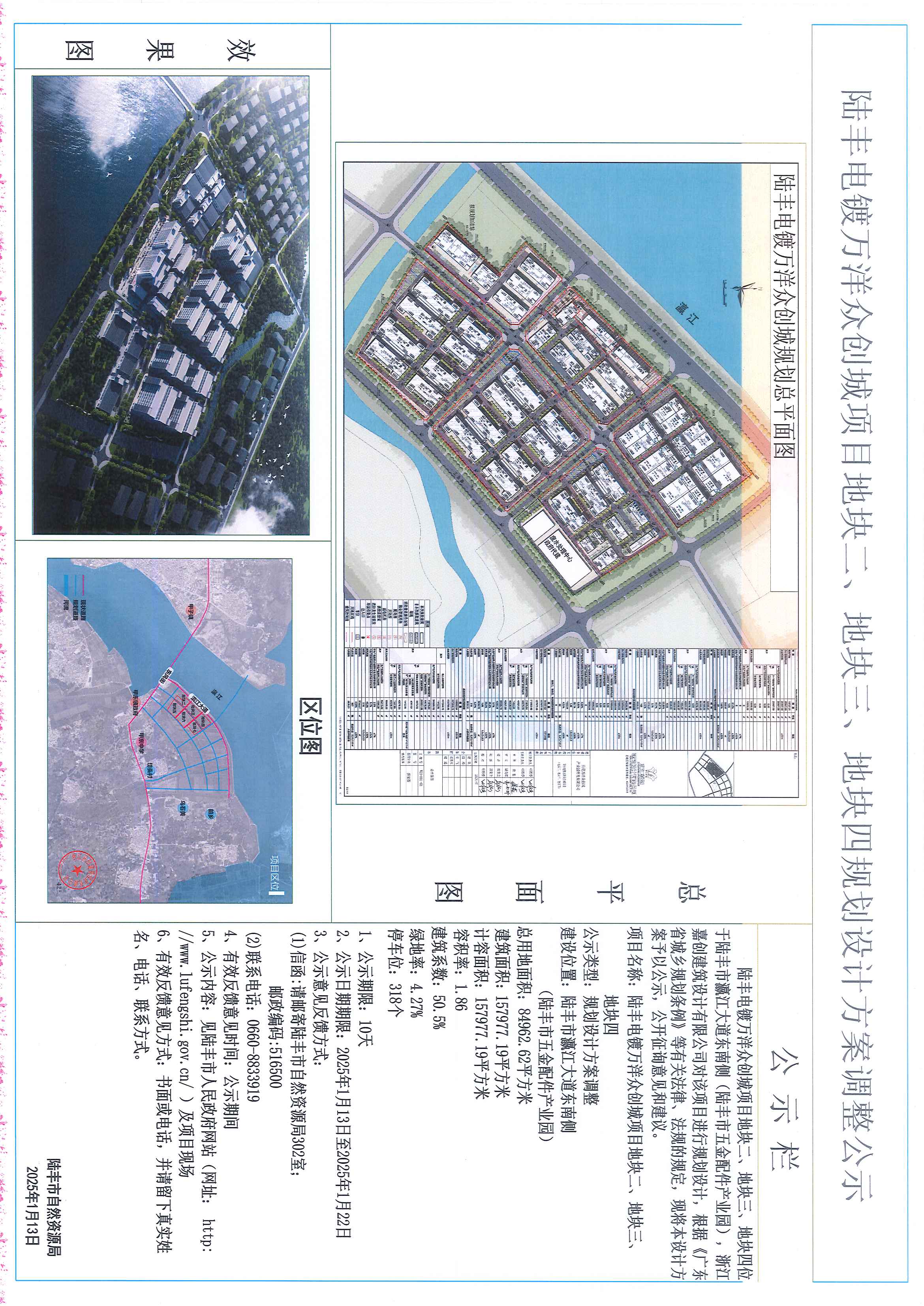 陸豐電鍍?nèi)f洋眾創(chuàng)城項(xiàng)目地塊二、地塊三、地塊四規(guī)劃設(shè)計(jì)方案調(diào)整公示