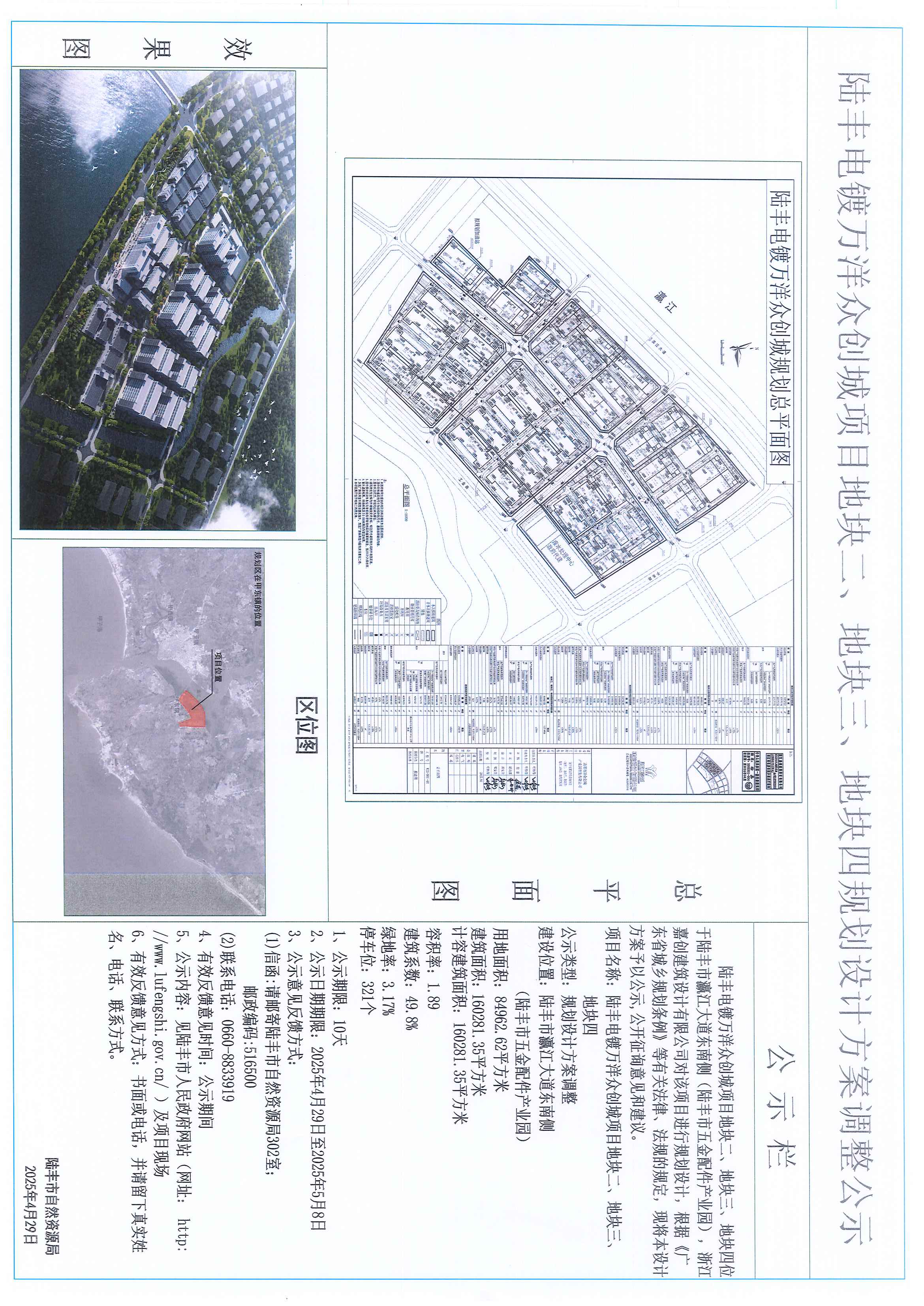 陸豐電鍍?nèi)f洋眾創(chuàng)城項目地塊二、地塊三、地塊四規(guī)劃設計方案調(diào)整公示