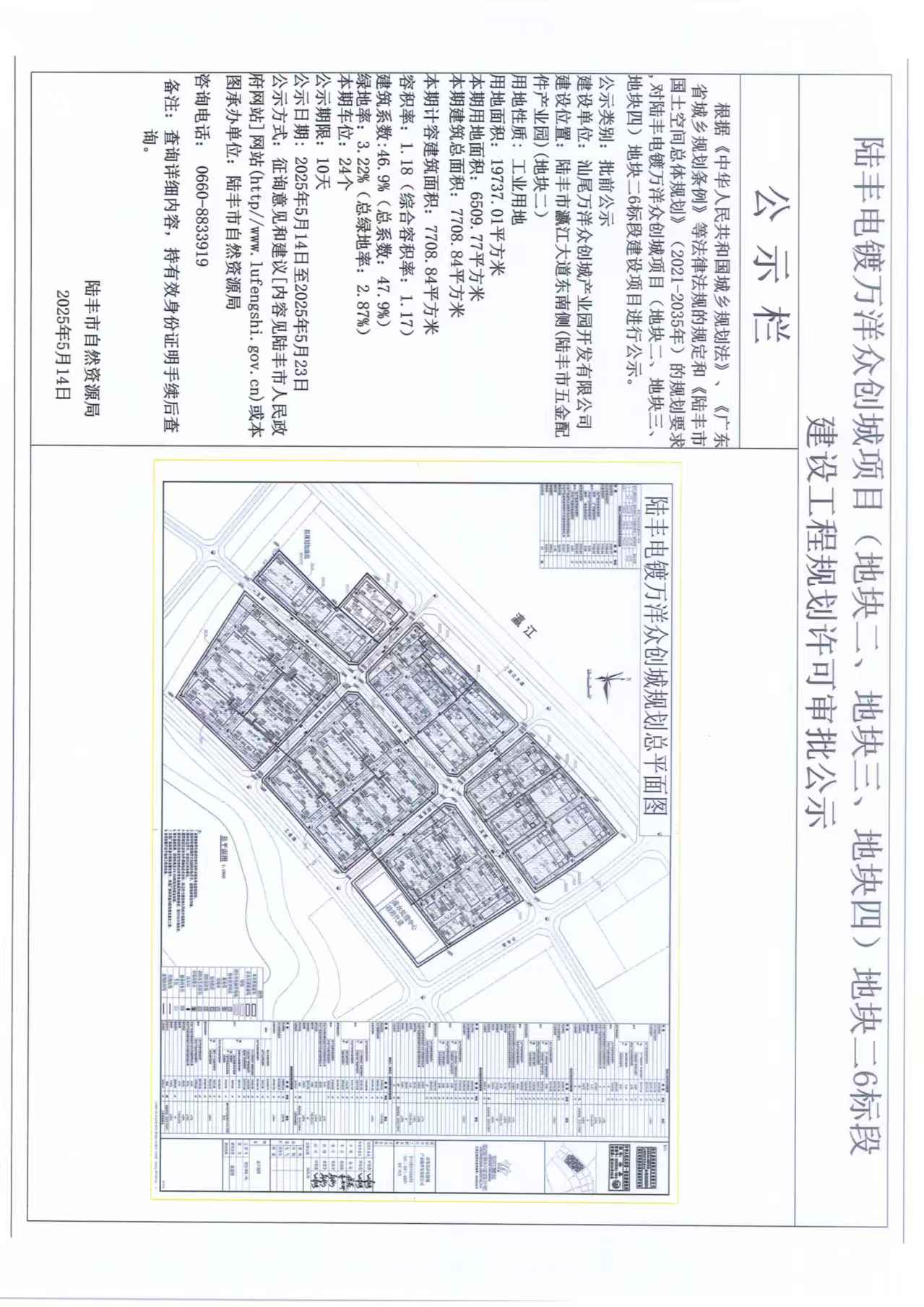 陸豐電鍍?nèi)f洋眾創(chuàng)城項(xiàng)目(地塊二、地塊三、地塊四)地塊二6標(biāo)段建設(shè)工程規(guī)劃許可審批公示