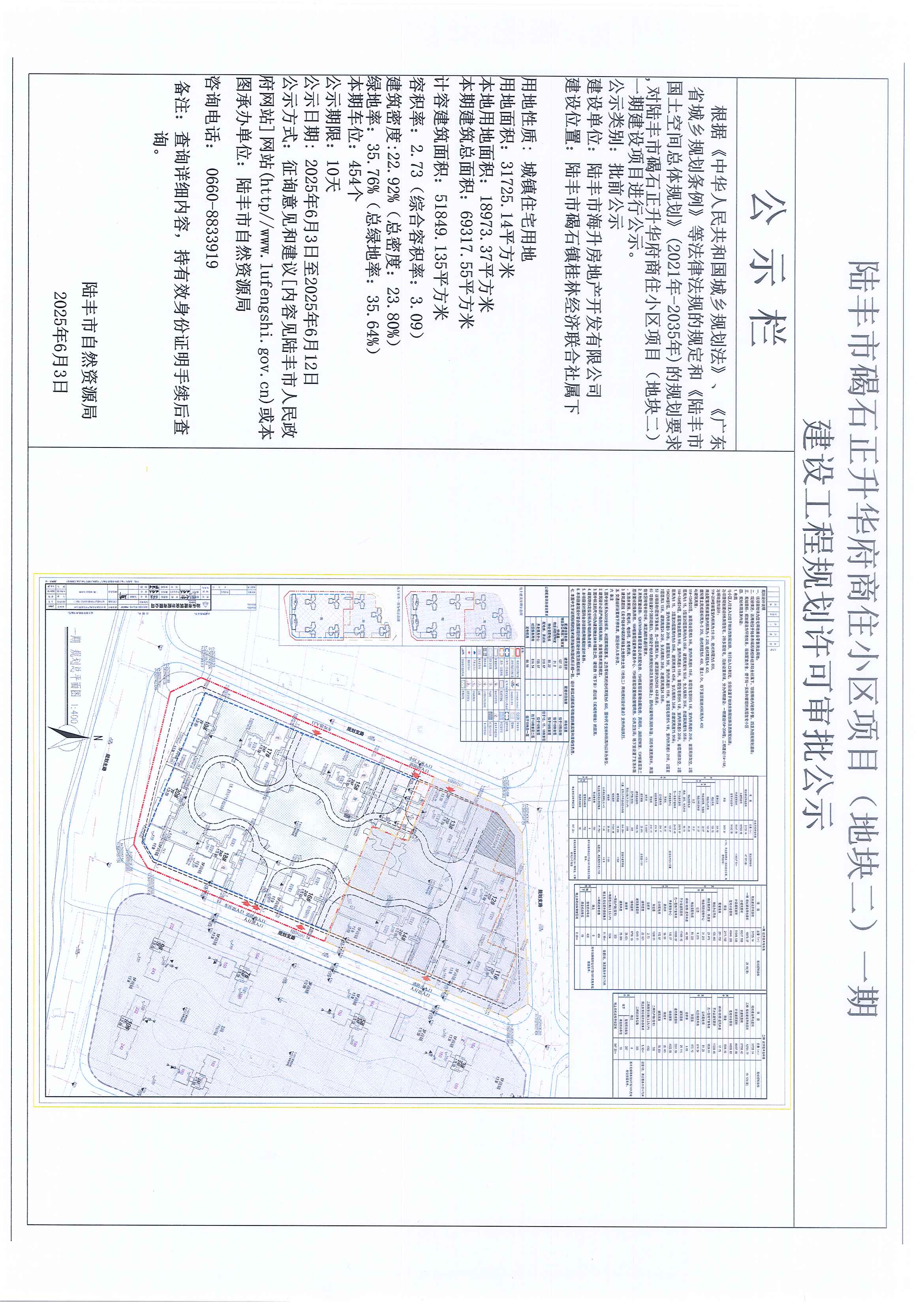 陸豐市碣石正升華府商住小區(qū)項(xiàng)目(地塊二)一期建設(shè)工程規(guī)劃許可審批公示