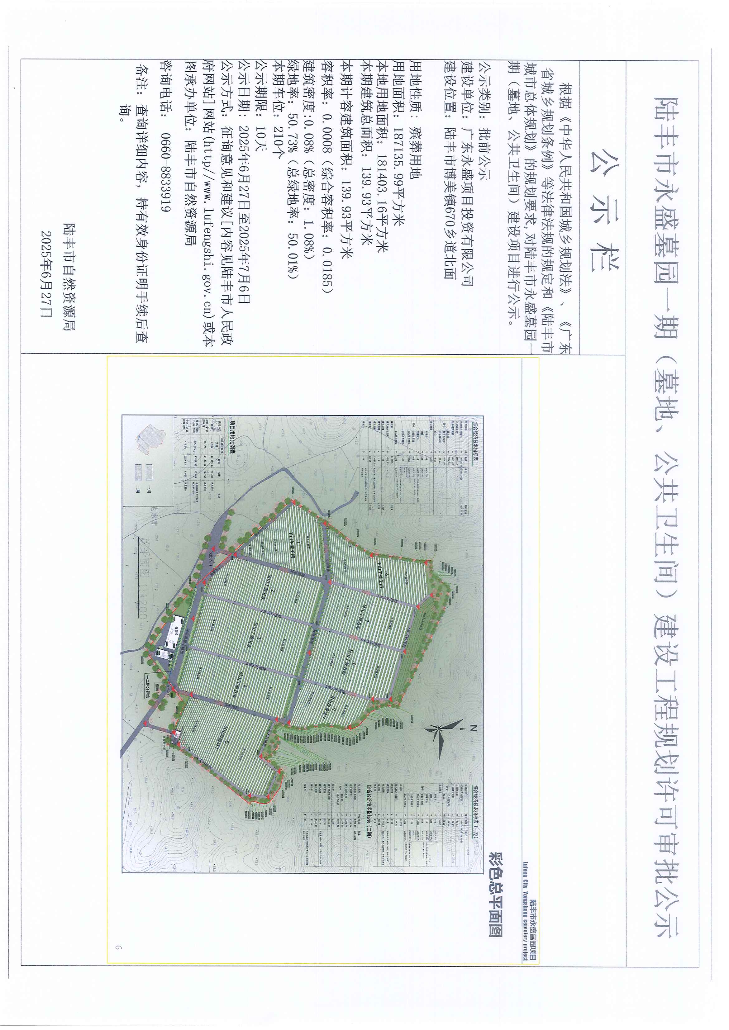 陸豐市永盛墓園一期(墓地、公共衛(wèi)生間)建設(shè)工程規(guī)劃許可審批公示