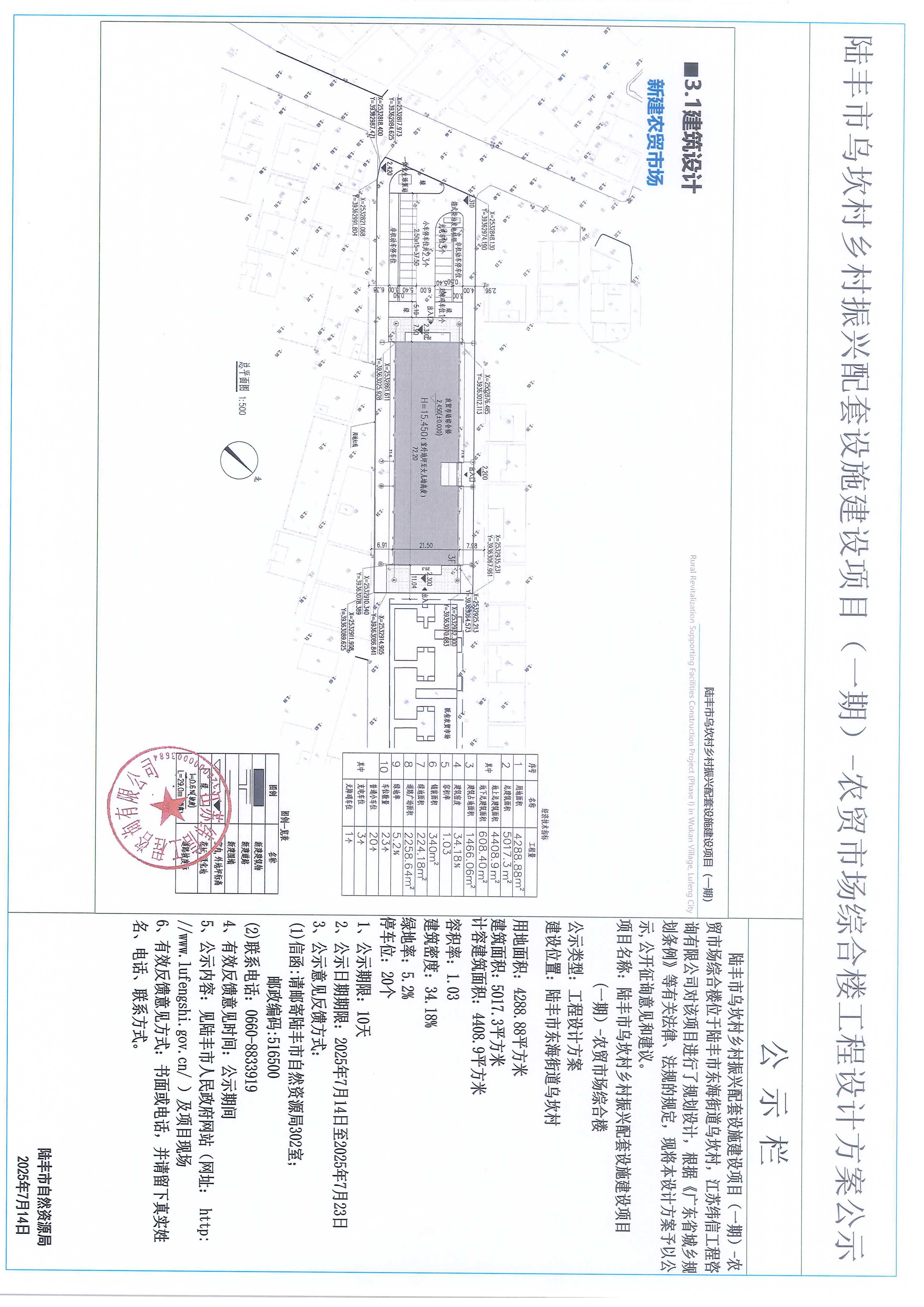 陸豐市烏坎村鄉(xiāng)村振興配套設施建設項目(一期)農(nóng)貿(mào)市場綜合樓工程設計方案公示