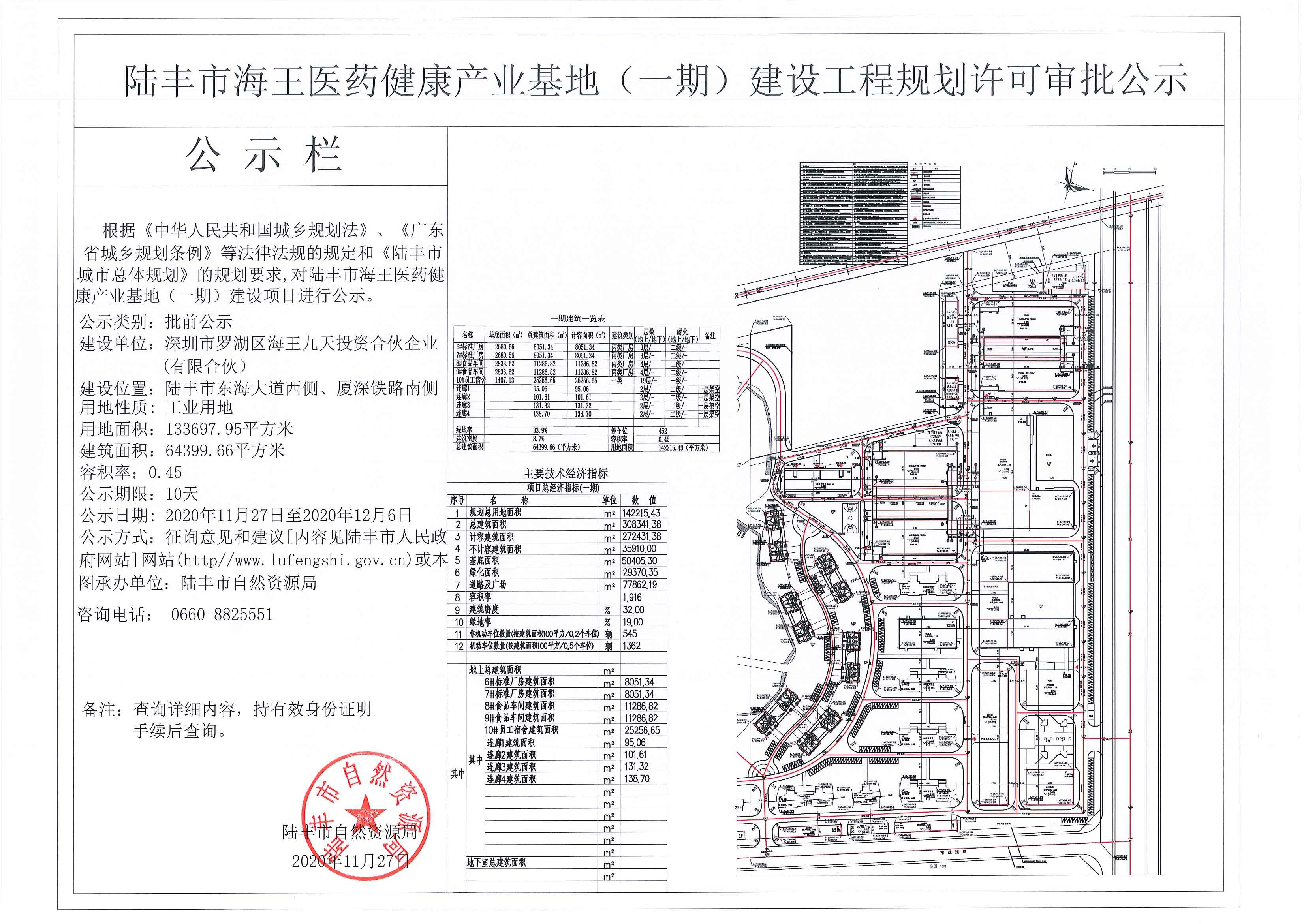 陸豐市海王醫(yī)藥健康產(chǎn)業(yè)基地(一期)建設(shè)工程規(guī)劃許可審批公示