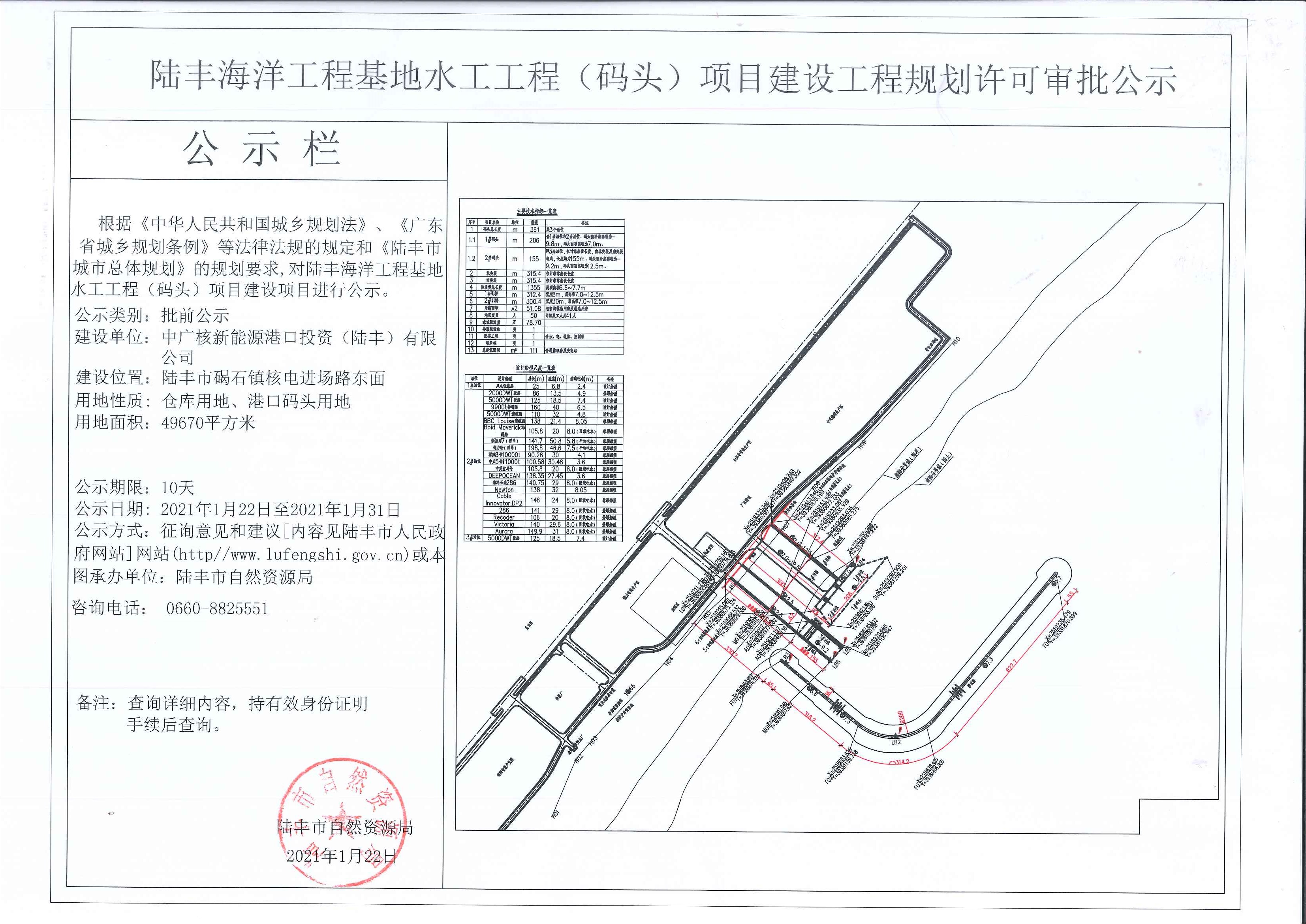 陸豐海洋工程基地水工工程(碼頭)項(xiàng)目建設(shè)工程規(guī)劃許可審批公示