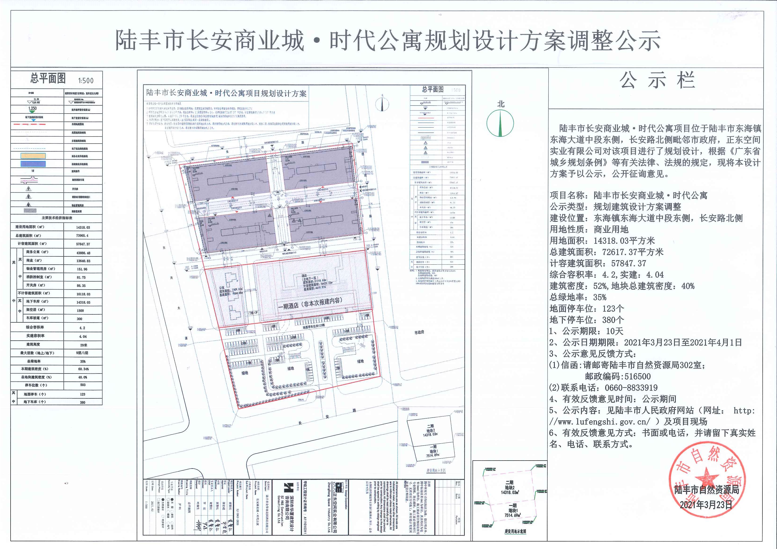 陸豐市長安商業(yè)城·時代公寓規(guī)劃設計方案調(diào)整公示