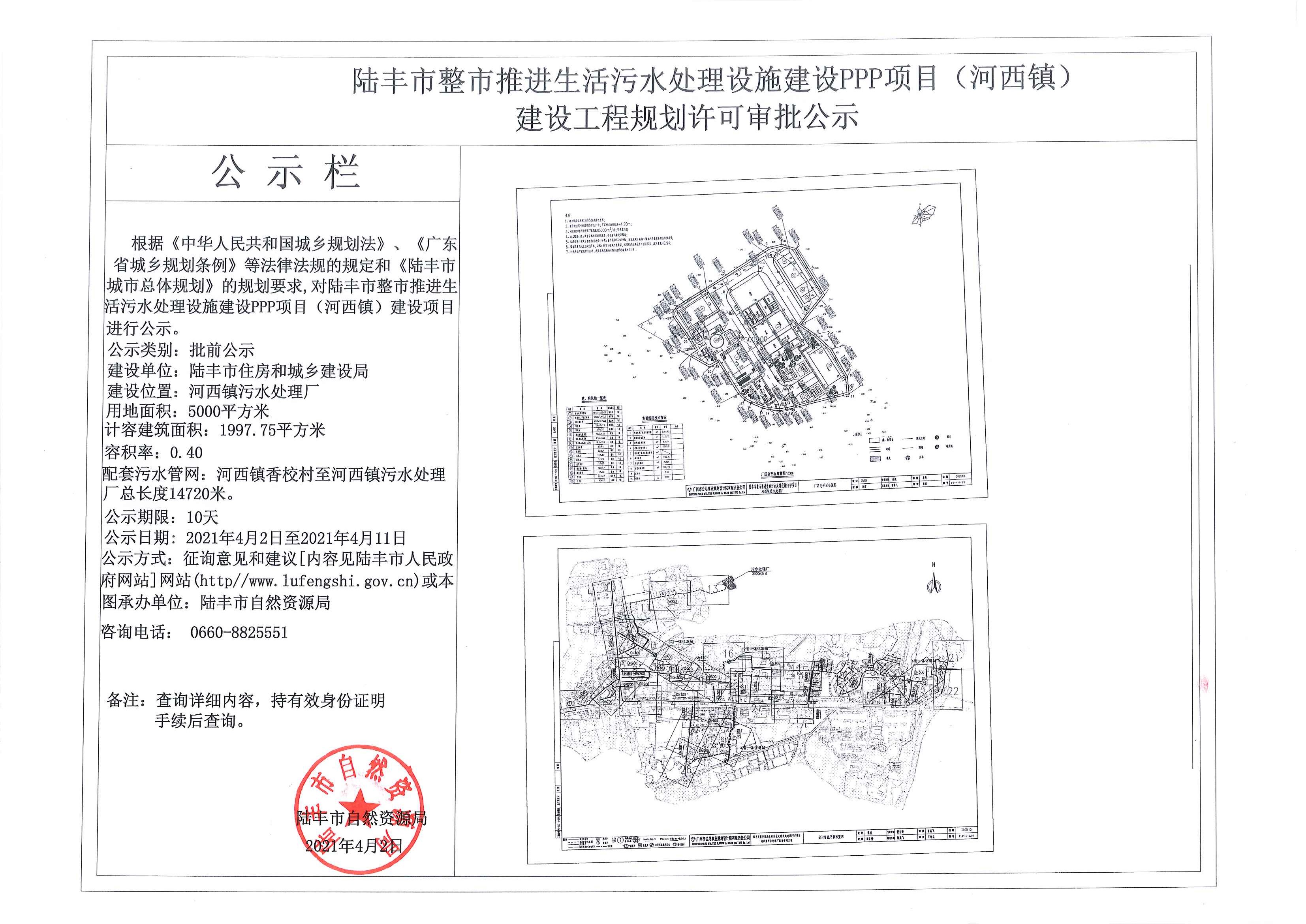 陸豐市整市推進生活污水處理設施建設PPP項目(河西鎮(zhèn))建設工作規(guī)劃許可審批公示