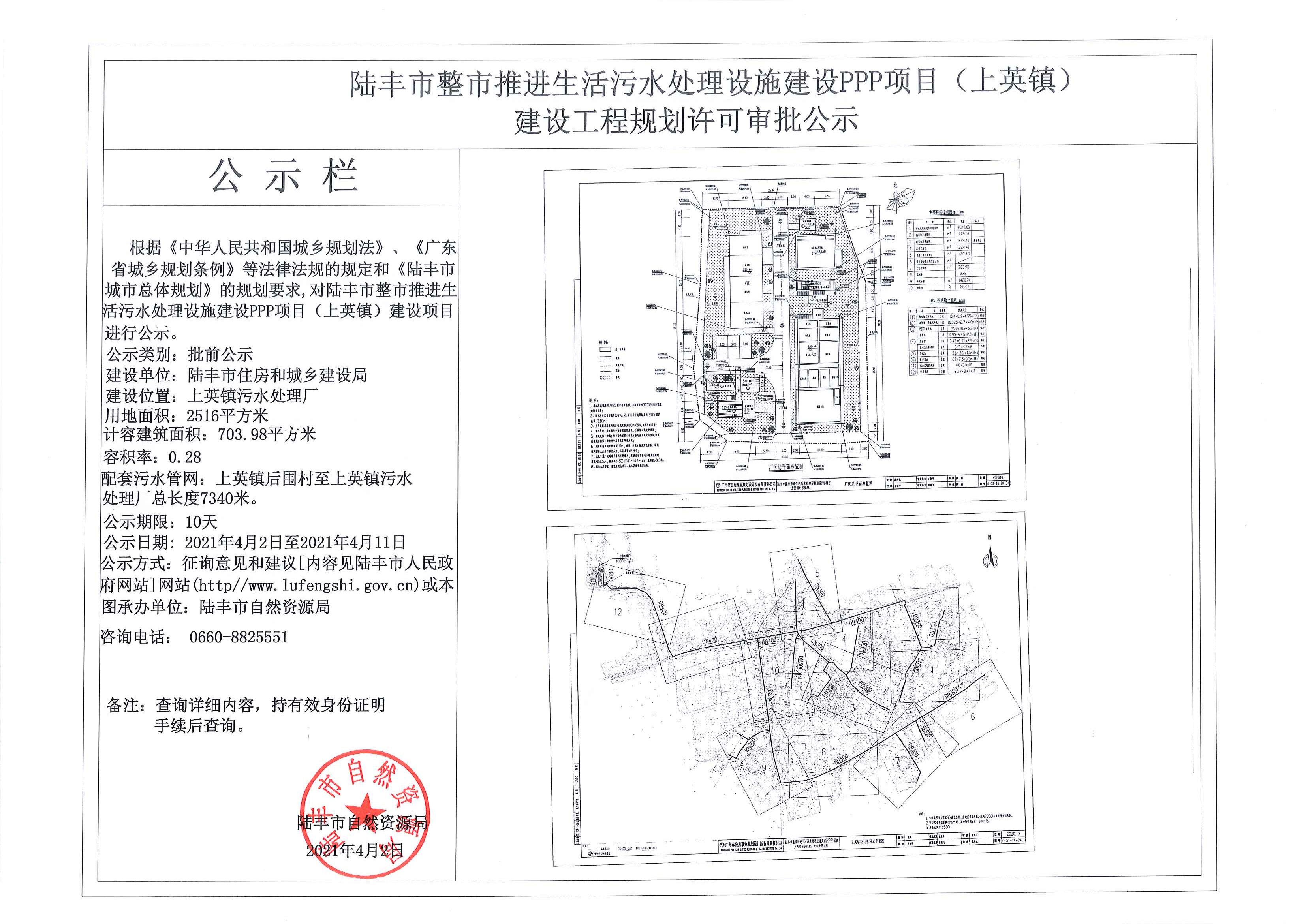 陸豐市整市推進(jìn)生活污水處理設(shè)施建設(shè)PPP項目(上英鎮(zhèn))建設(shè)工作規(guī)劃許可審批公示
