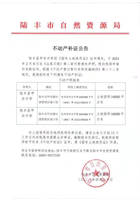 不動(dòng)產(chǎn)補(bǔ)證公告