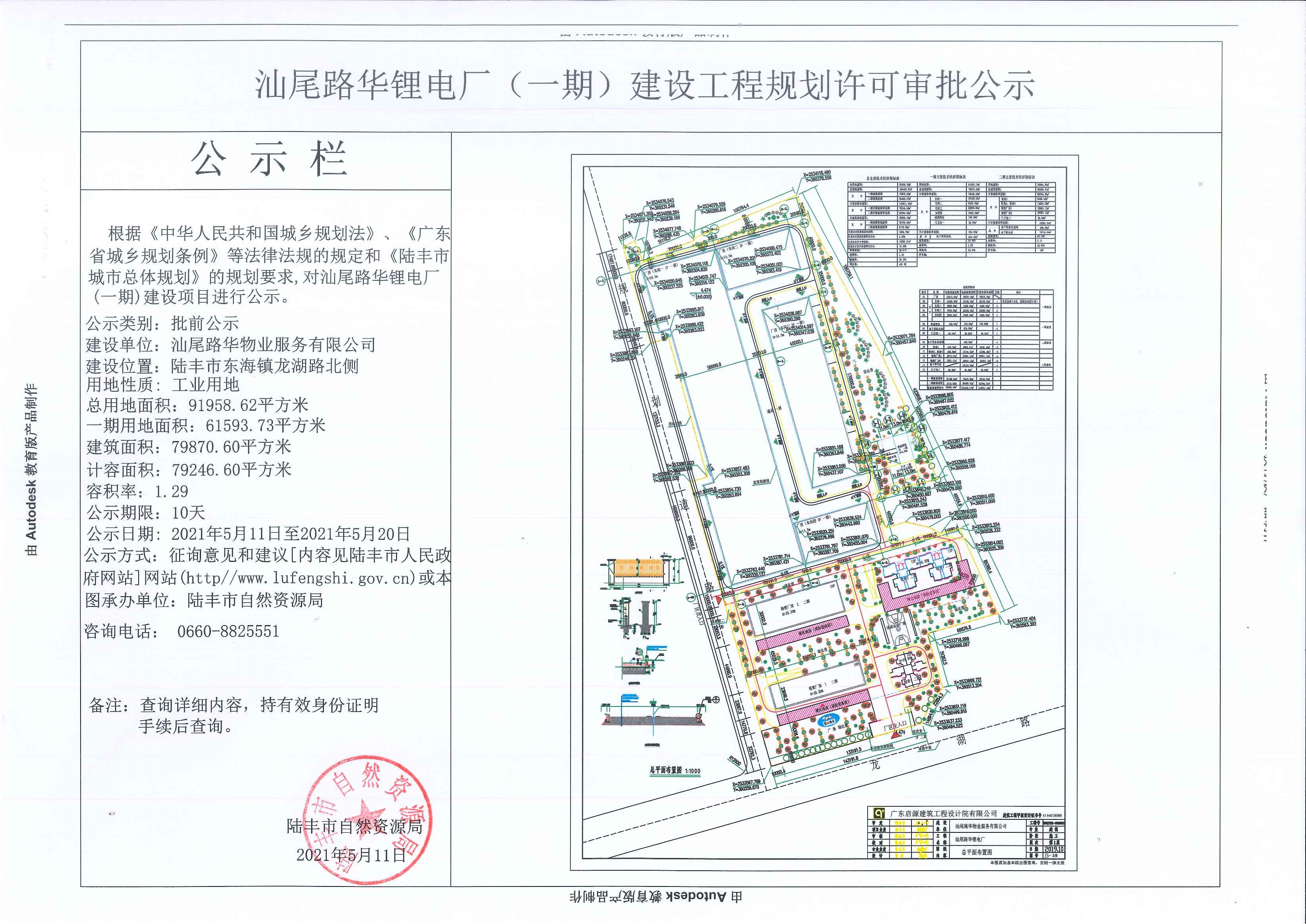 汕尾路華鋰電廠(一期)建設(shè)工程規(guī)劃許可審批公示