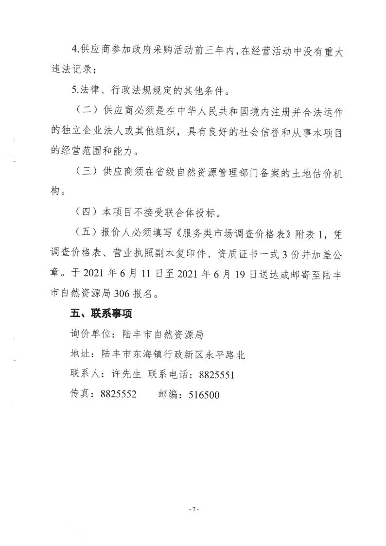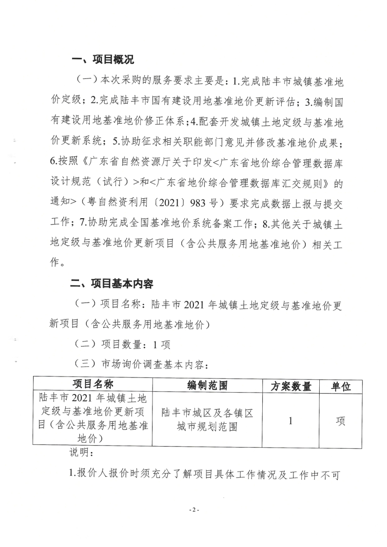 陸豐市2021年度城鎮(zhèn)土地定級與基準地價更新項目(含公共服務用地基準地價)評估服務費市場詢價調查
