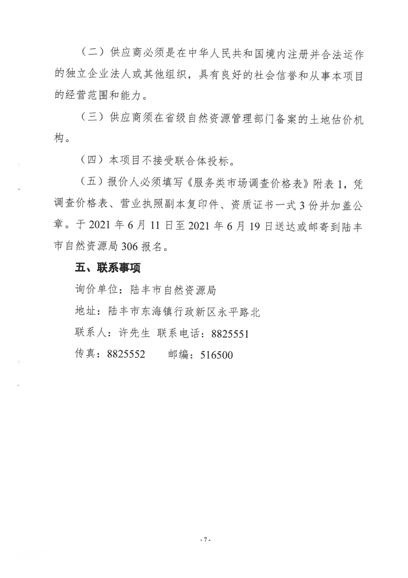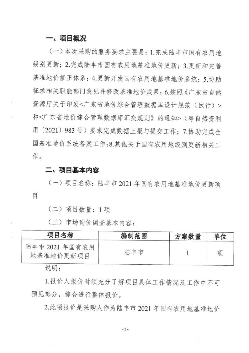 陸豐市2021年度國有農(nóng)用地基準地價更新項目評估服務費市場詢價調(diào)查