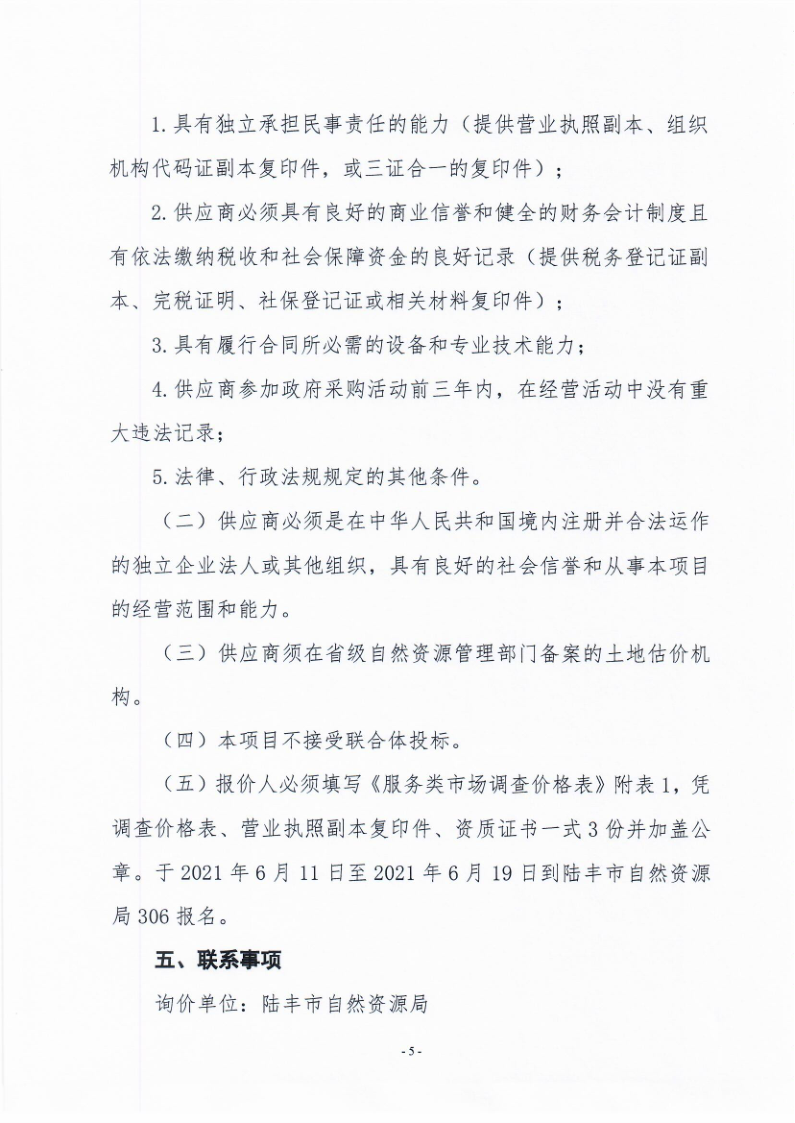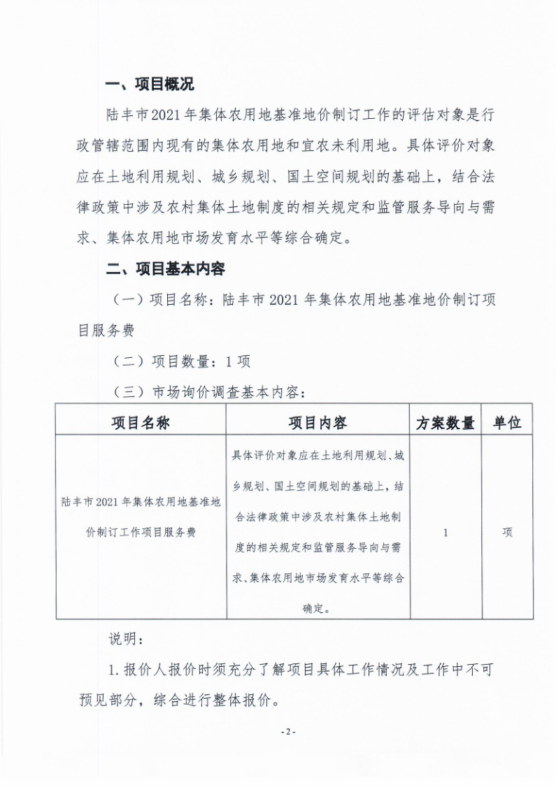 陸豐市2021年集體農用地基準地價制訂項目服務費市場詢價調查