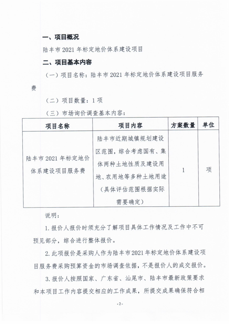 陸豐市2021年標(biāo)定地價(jià)體系建設(shè)項(xiàng)目服務(wù)費(fèi)市場(chǎng)詢(xún)價(jià)調(diào)查