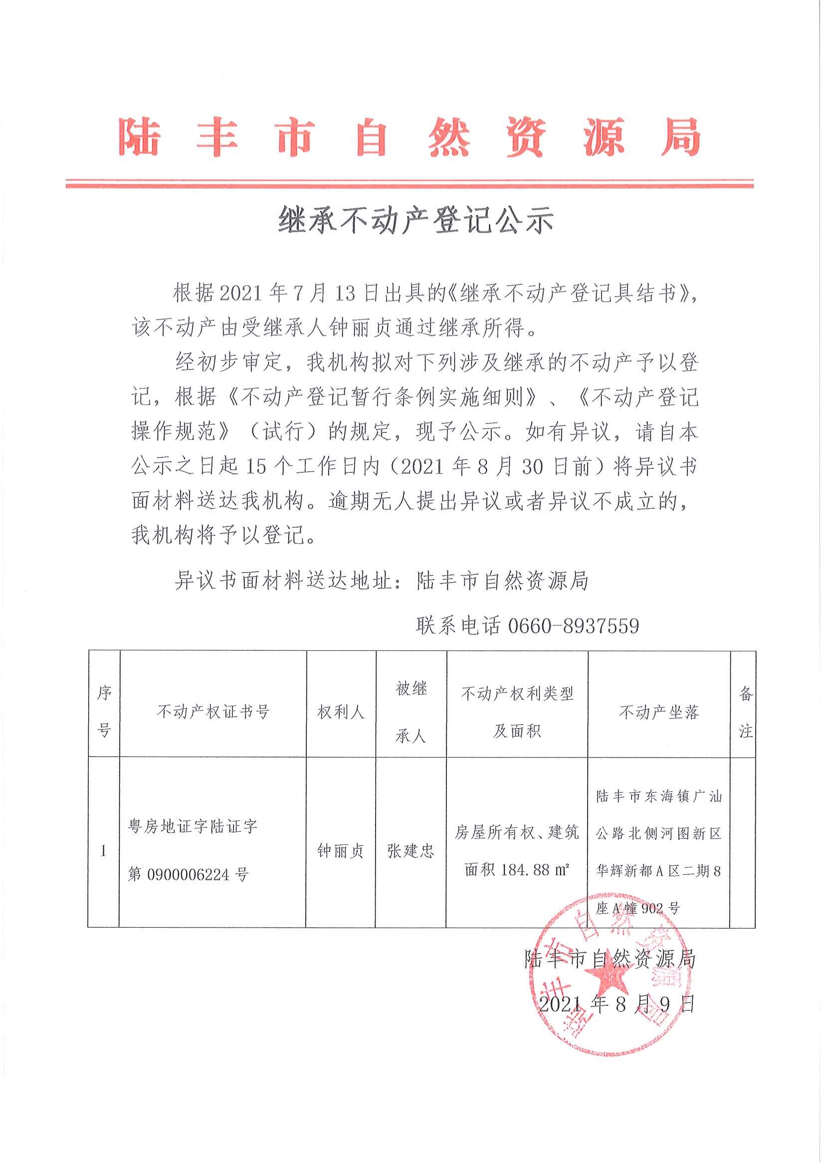 繼承不動產登記公示(鐘麗貞)