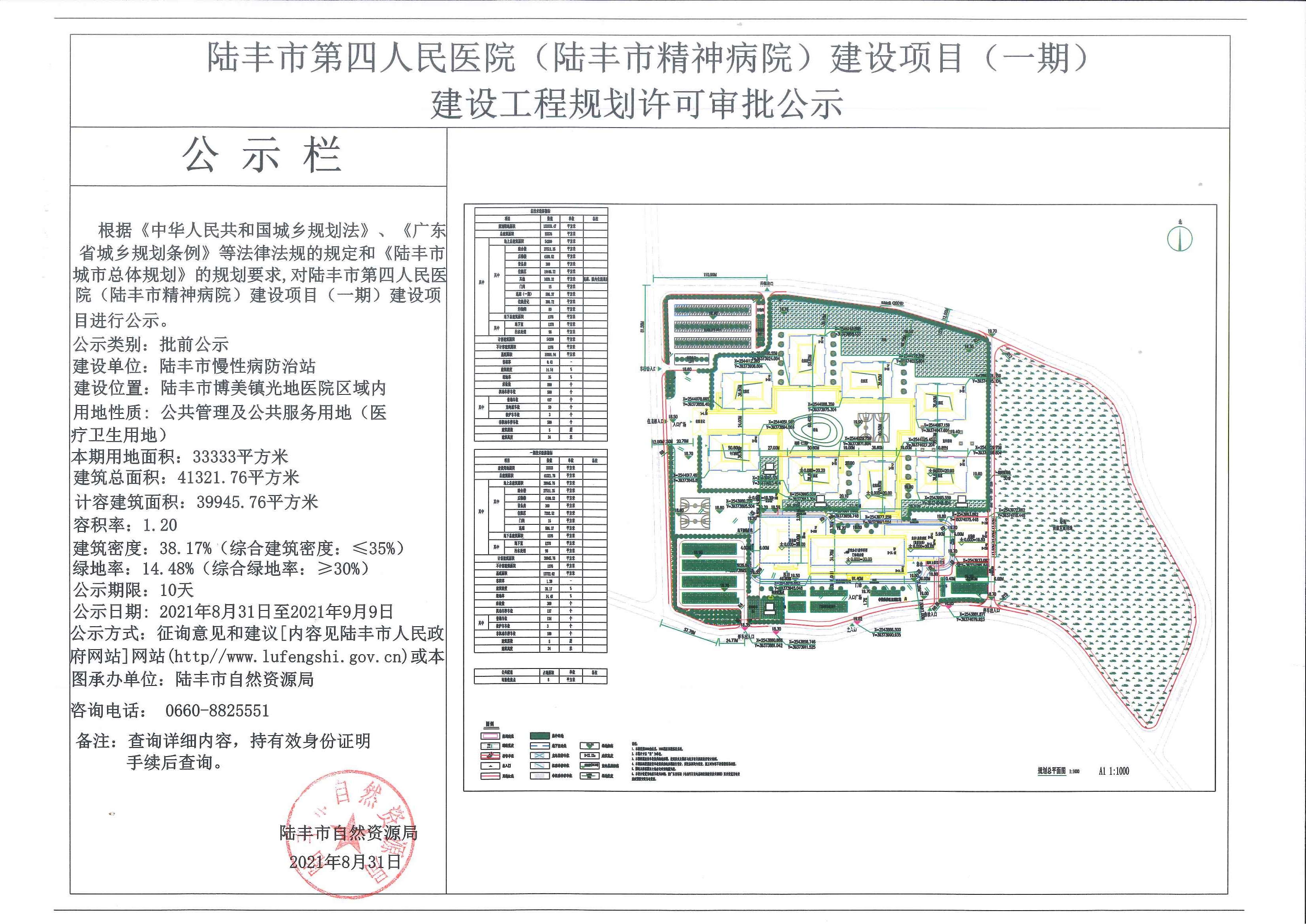 陸豐市第四人民醫(yī)院(陸豐市精神病院)建設(shè)項(xiàng)目(一期)建設(shè)工程規(guī)劃許可審批公示