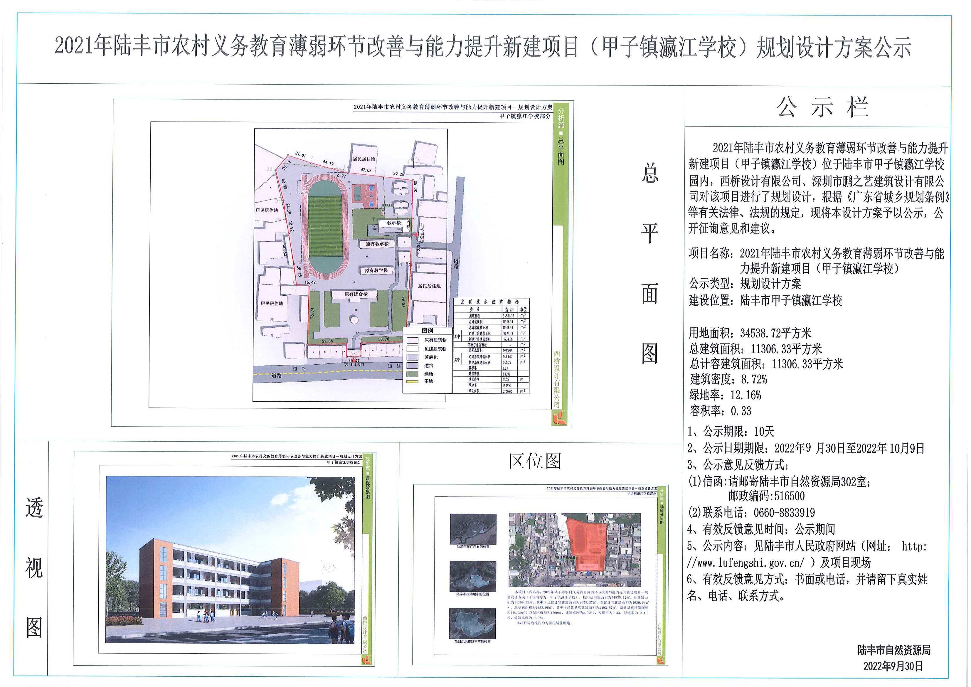 2021年陸豐市農(nóng)村義務教育薄弱環(huán)節(jié)改善與能力提升新建項目(甲子鎮(zhèn)瀛江學校)規(guī)劃設計方案公示