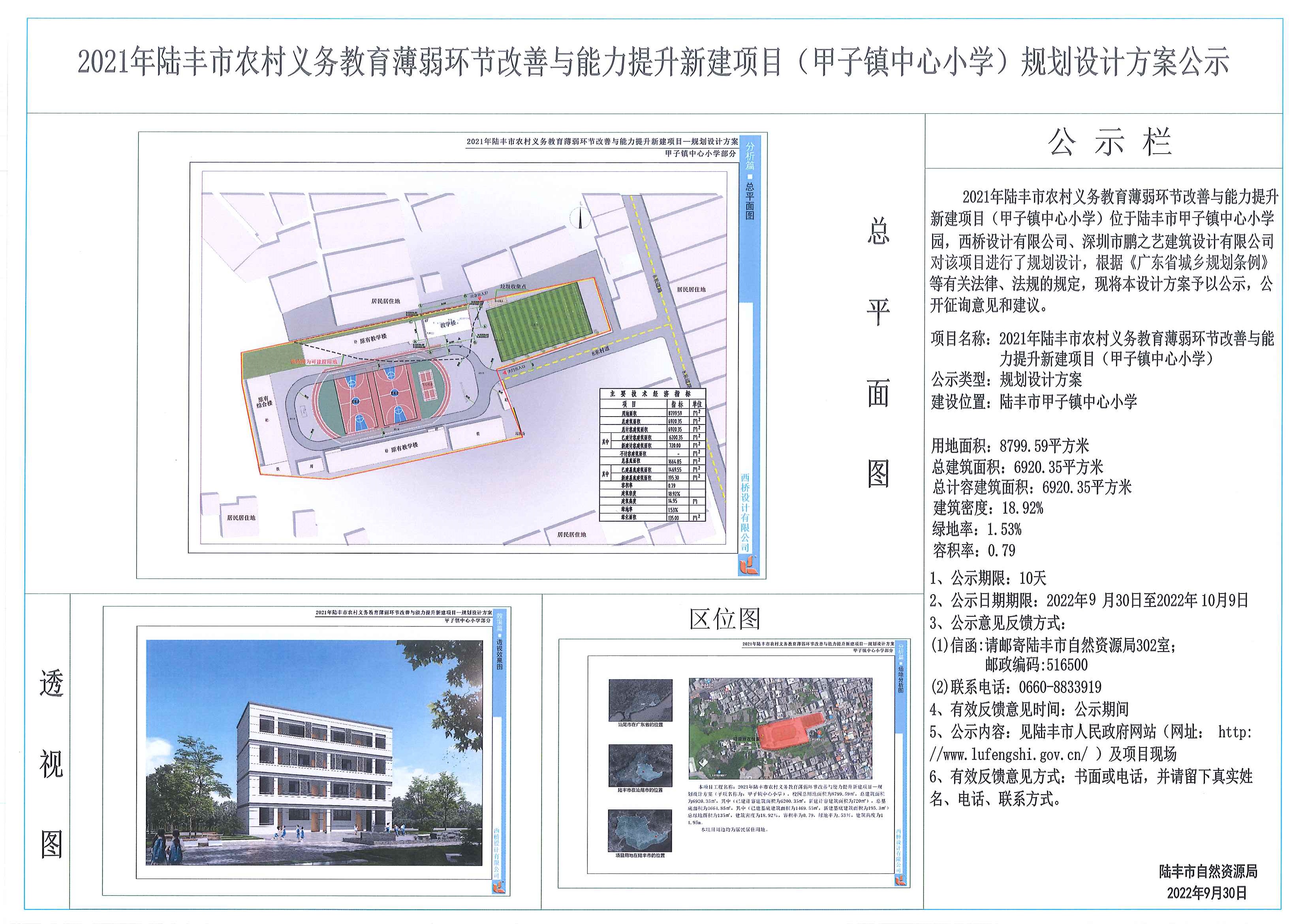 2021年陸豐市農(nóng)村義務(wù)教育薄弱環(huán)節(jié)改善與能力提升新建項目(甲子鎮(zhèn)中心小學(xué))規(guī)劃設(shè)計方案公示