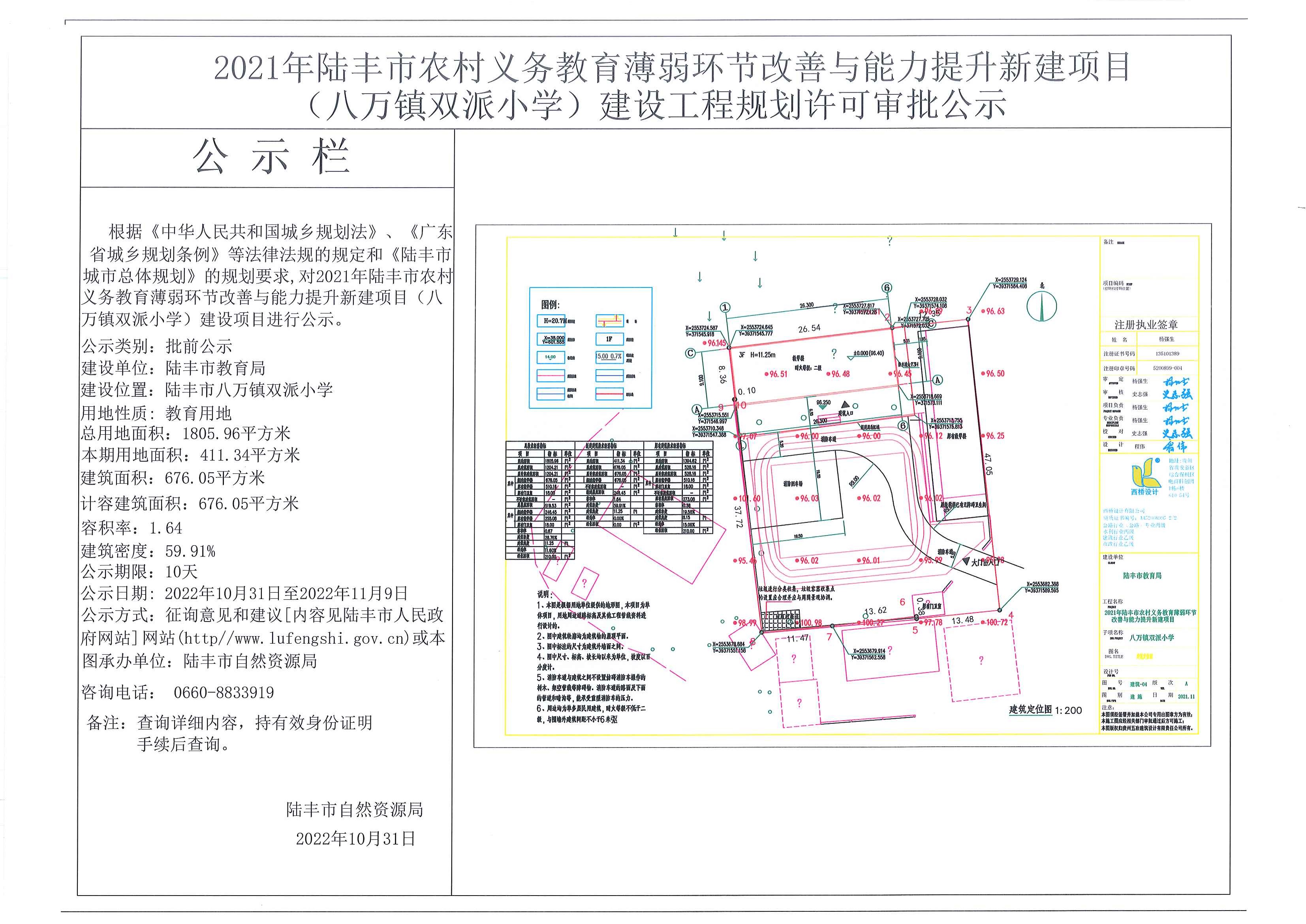 2021年陸豐市農(nóng)村義務(wù)教育薄弱環(huán)節(jié)改善與能力提升新建項目(八萬鎮(zhèn)雙派小學(xué))建設(shè)工程規(guī)劃許可審批公示
