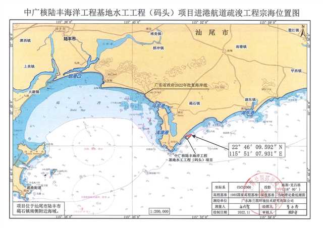 根據(jù)《中華人民共和國海域使用管理法》、《廣東省海域使用管理條例》及相關(guān)規(guī)定,現(xiàn)對中廣核陸豐海洋工程基地水工工程(碼頭)項目進港航道疏浚工程擬使用海域情況,予以公示: