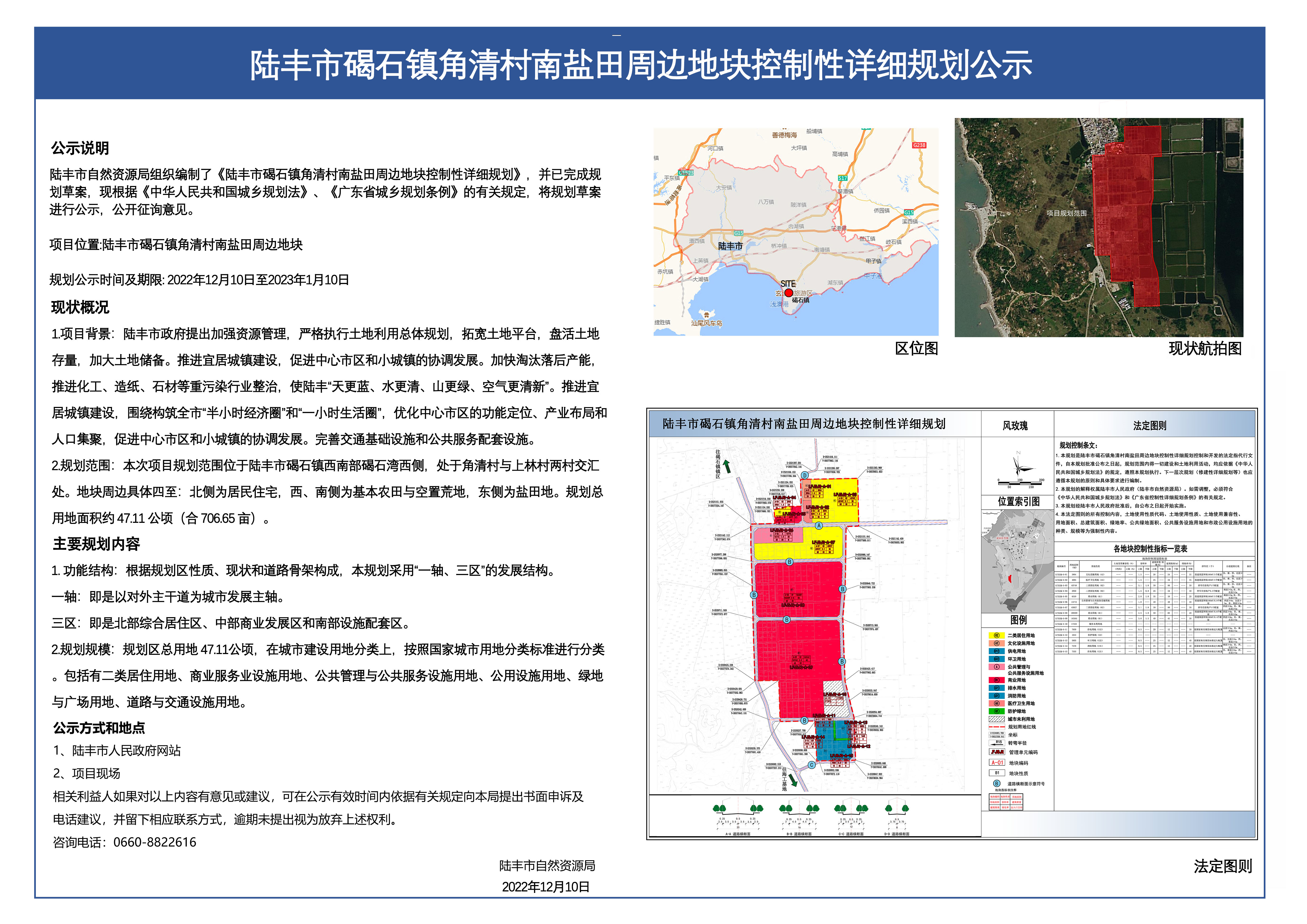 陸豐市碣石鎮(zhèn)角清村南鹽田周邊地塊控制性詳細(xì)規(guī)劃公示