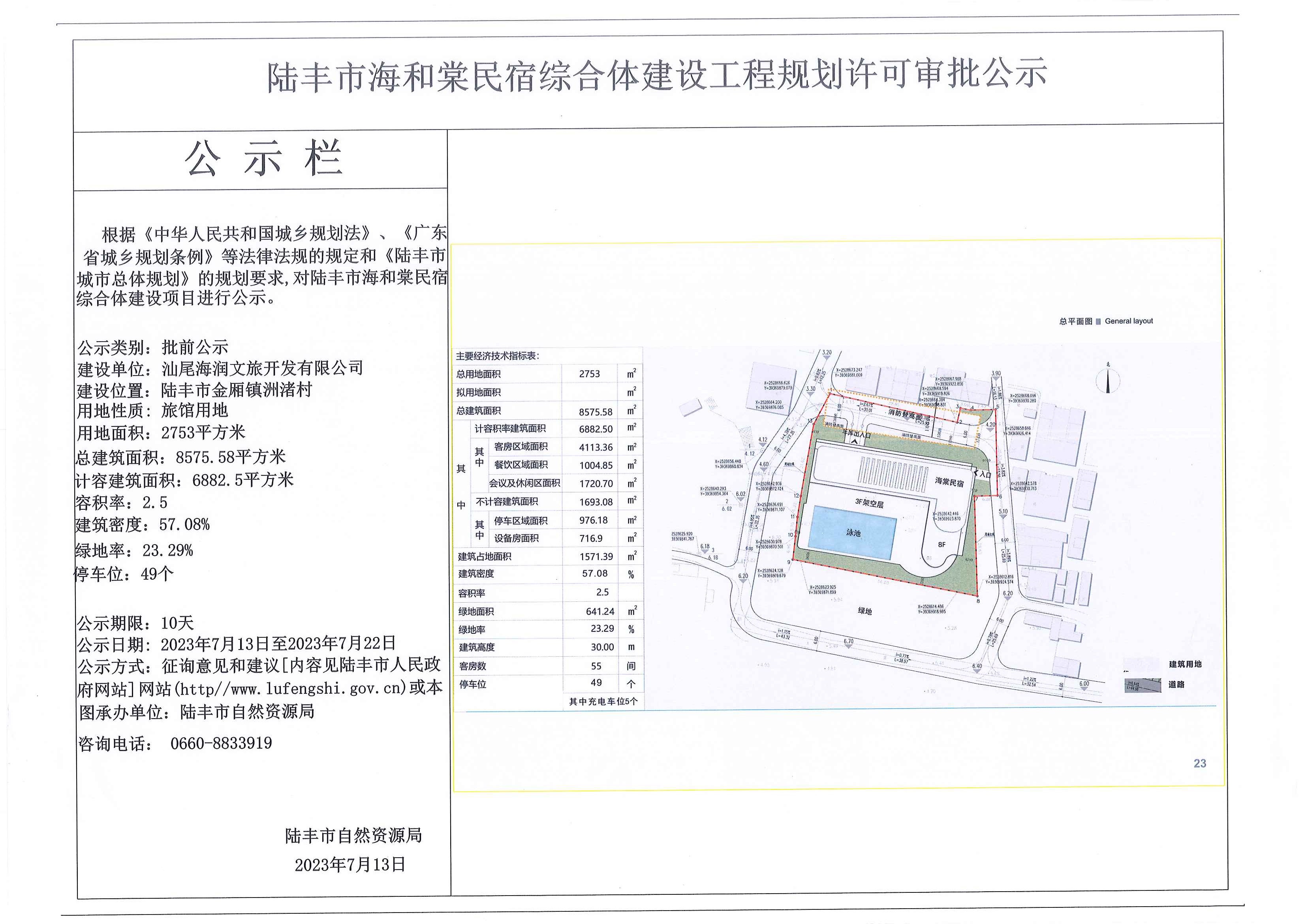 陸豐市海和棠民宿綜合體建設(shè)工程規(guī)劃許可審批公示