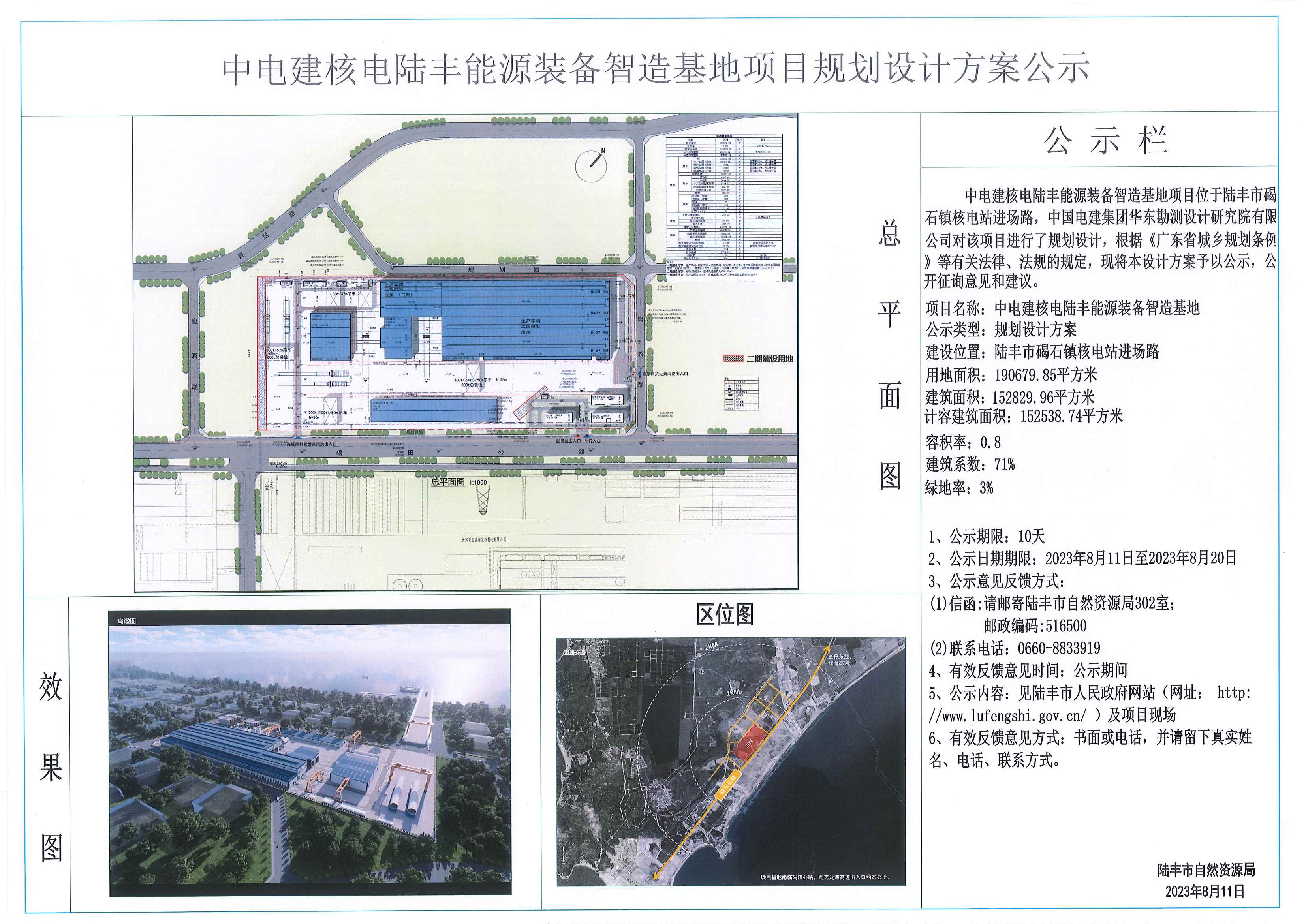 中電建核電陸豐能源裝備智造基地項(xiàng)目規(guī)劃設(shè)計方案公示
