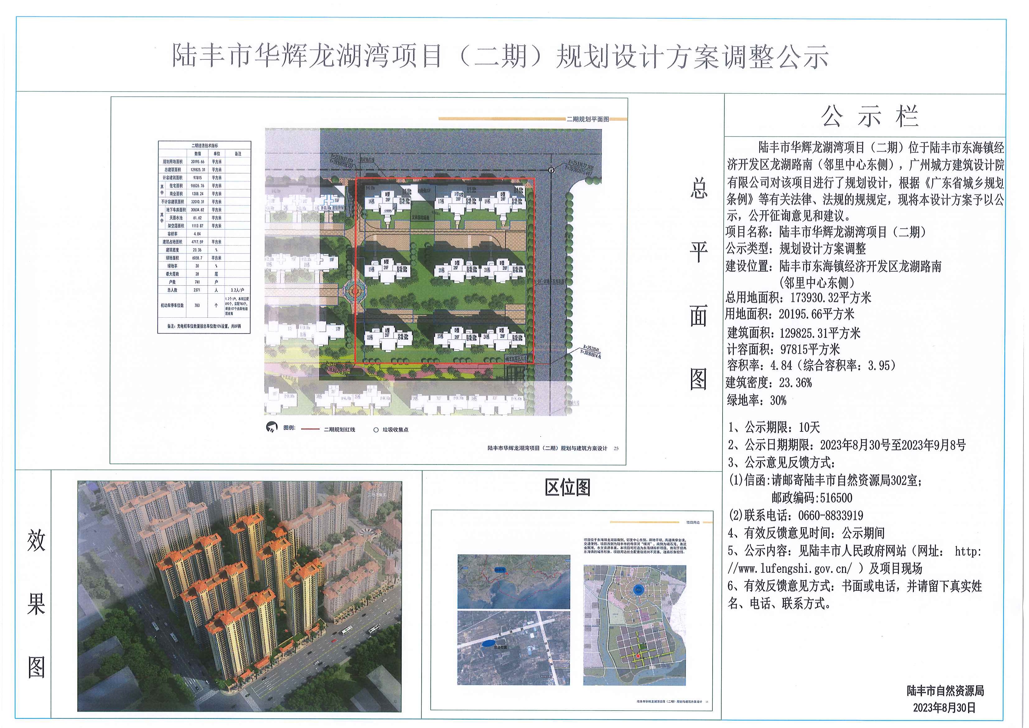 陸豐市華輝龍湖灣項(xiàng)目 (二期) 規(guī)劃設(shè)計(jì)方案調(diào)整公示