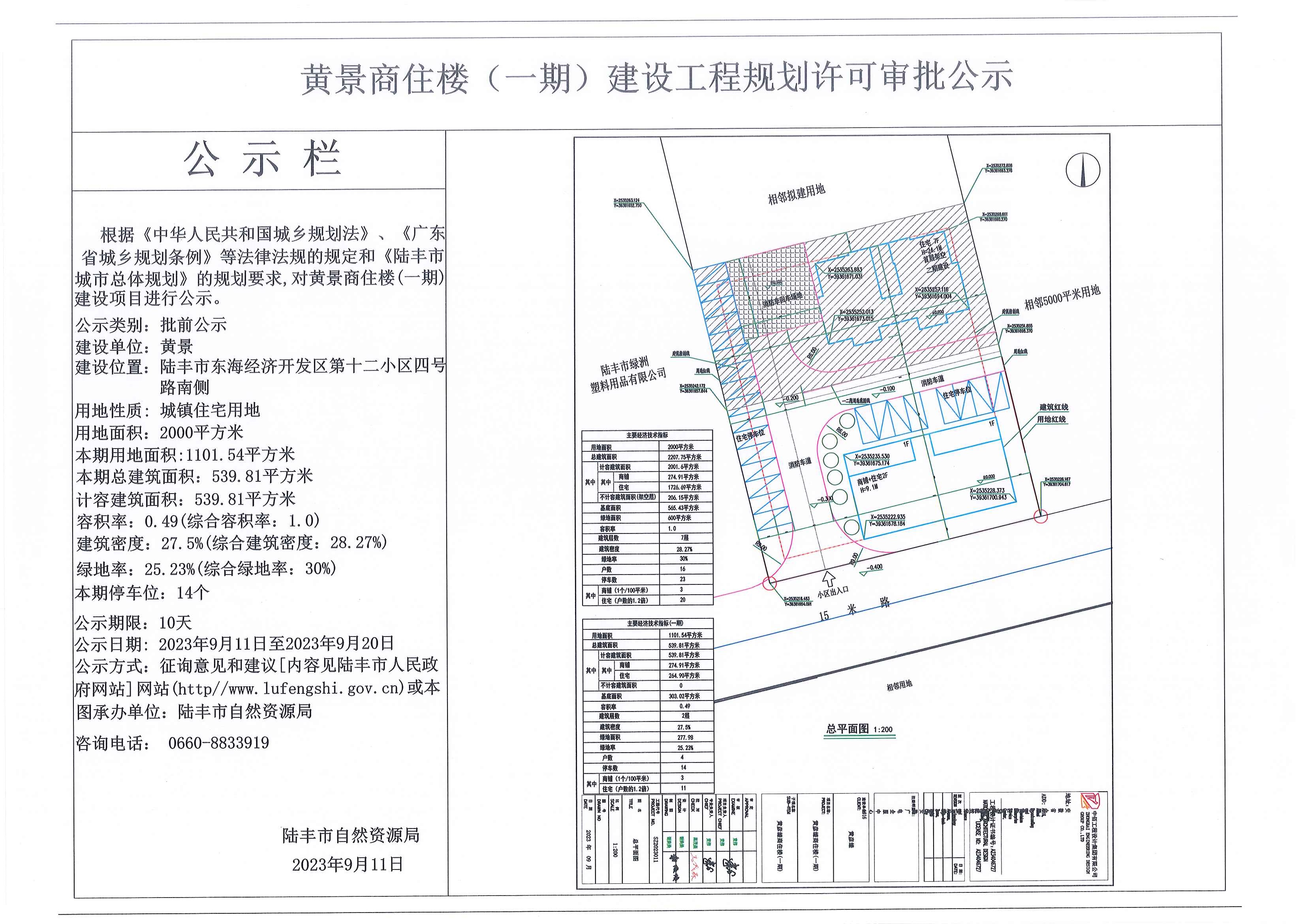 黃景商住樓(一期)建設(shè)工程規(guī)劃許可審批公示