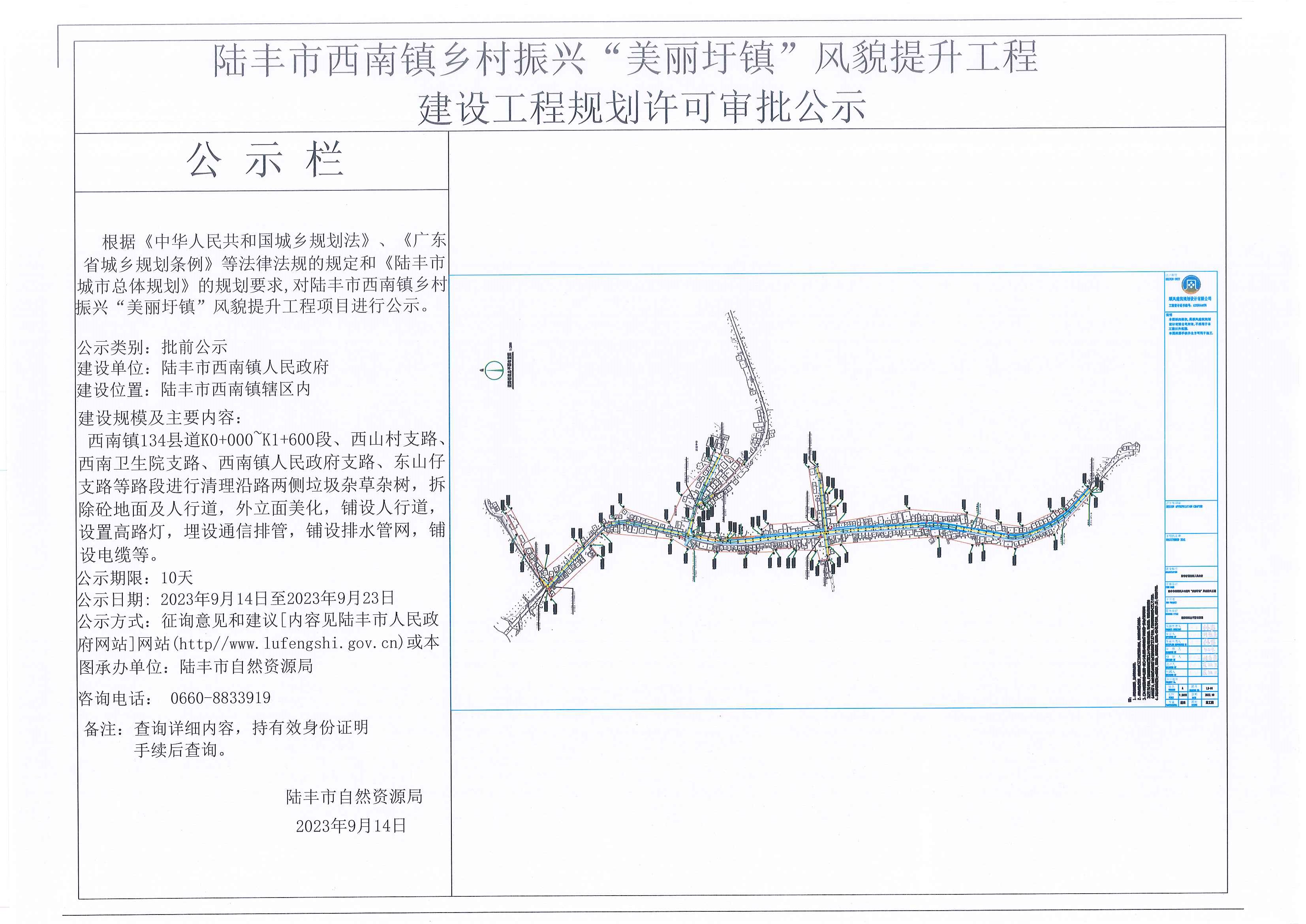 陸豐市西南鎮(zhèn)鄉(xiāng)村振興“美麗圩鎮(zhèn)”風(fēng)貌提升工程建設(shè)工程規(guī)劃許可審批公示
