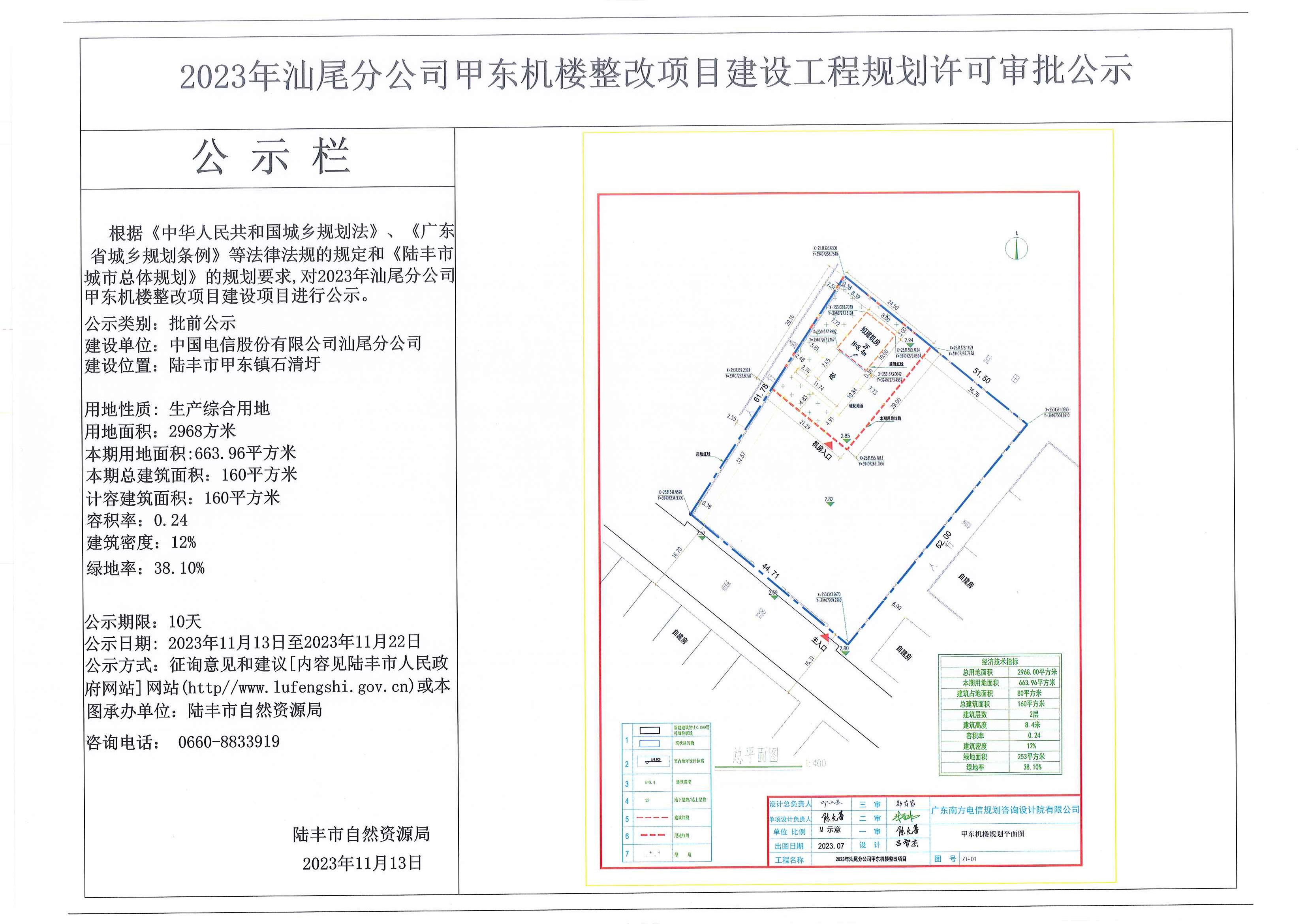 2023年汕尾分公司甲東機(jī)樓整改項(xiàng)目建設(shè)工程規(guī)劃許可審批公示