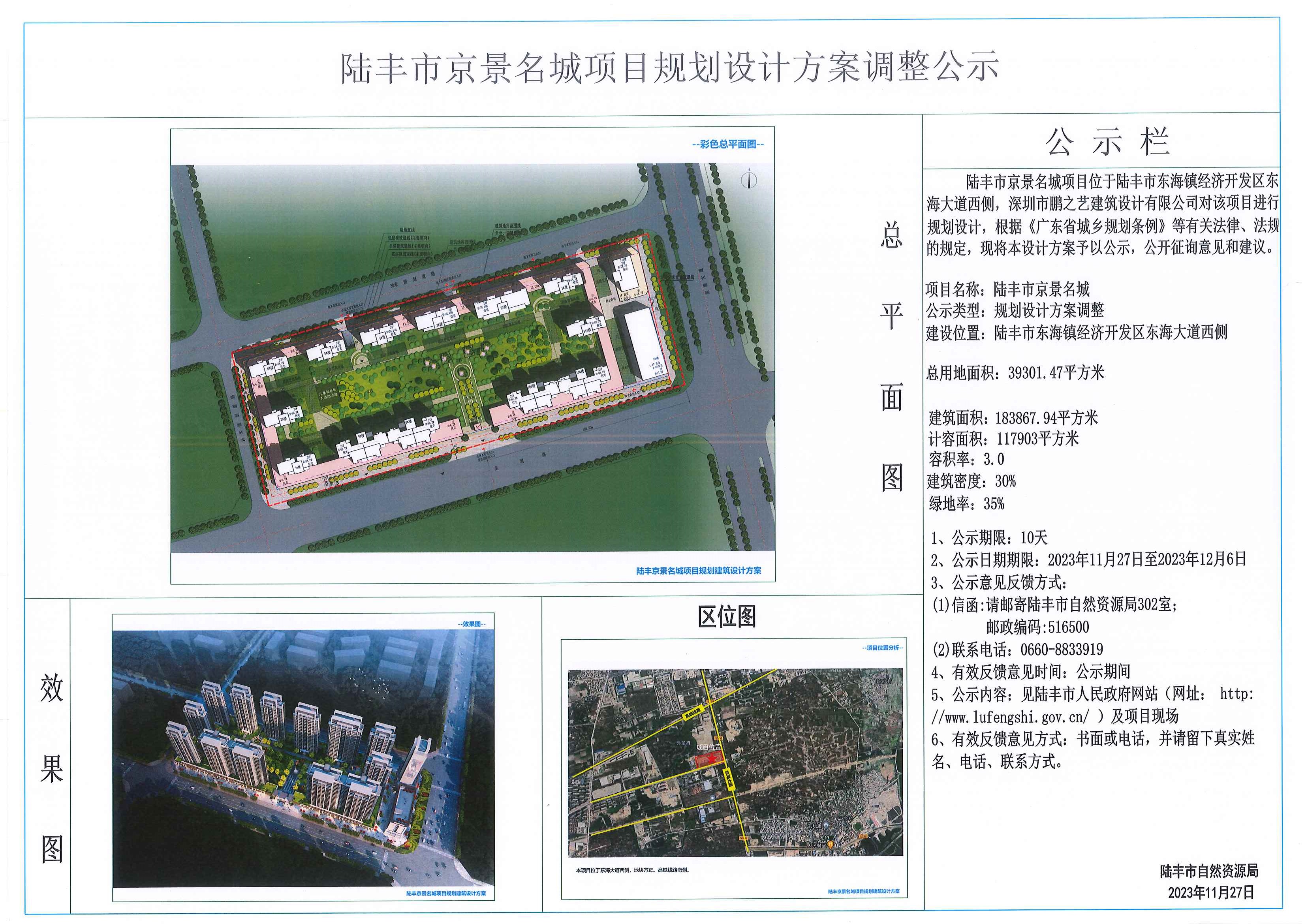 陸豐市京景名城項目規(guī)劃設(shè)計方案調(diào)整公示