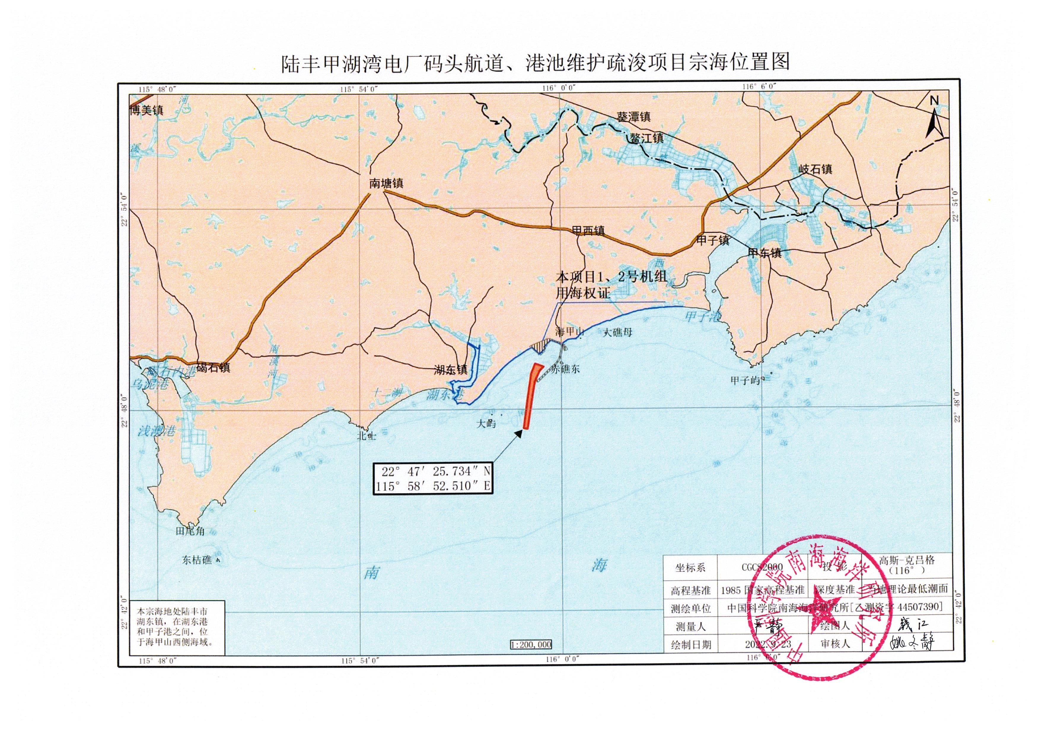 一、陸豐甲湖灣電廠碼頭航道、港池維護性疏浚項目位于陸豐市湖東鎮(zhèn)陸豐甲湖灣電廠海甲山西側海域擬申請使用海域,用海面積90.5427 公頃,用海類型為工業(yè)用海中的電力工業(yè)用海,用海方式為開放式用海中的專用航道、錨地及其它開放式用海,申請用海期限為2.5個月,具體界址點及坐標見附件。