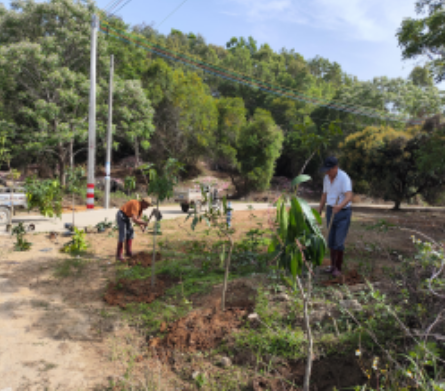 垃圾清理完成后,參與人員迅速投入植樹活動。根據山林生態(tài)特點,科學規(guī)劃種植區(qū)域,選取適宜本地生長的芒果樹 48 株。在指導下,大家分工明確,揮鍬鏟土、扶苗填坑、澆水固根,經過數小時努力,一排排新苗整齊挺立,為山林增添生機與綠意。